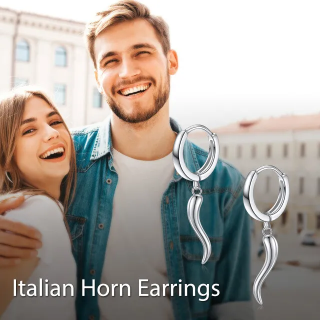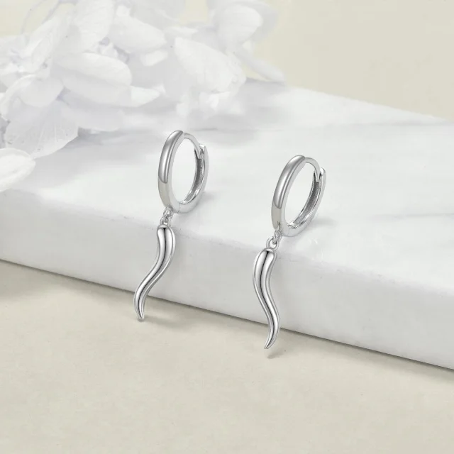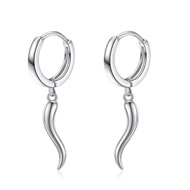 Fine Jewelry Minimalist Design 925 Sterling Silver Rhodium Plated Tadpole Horn Hoop Earrings