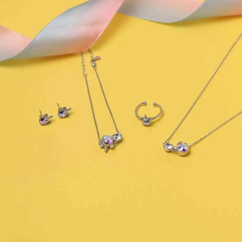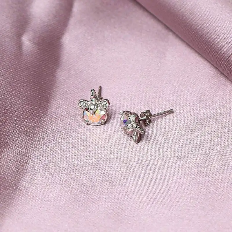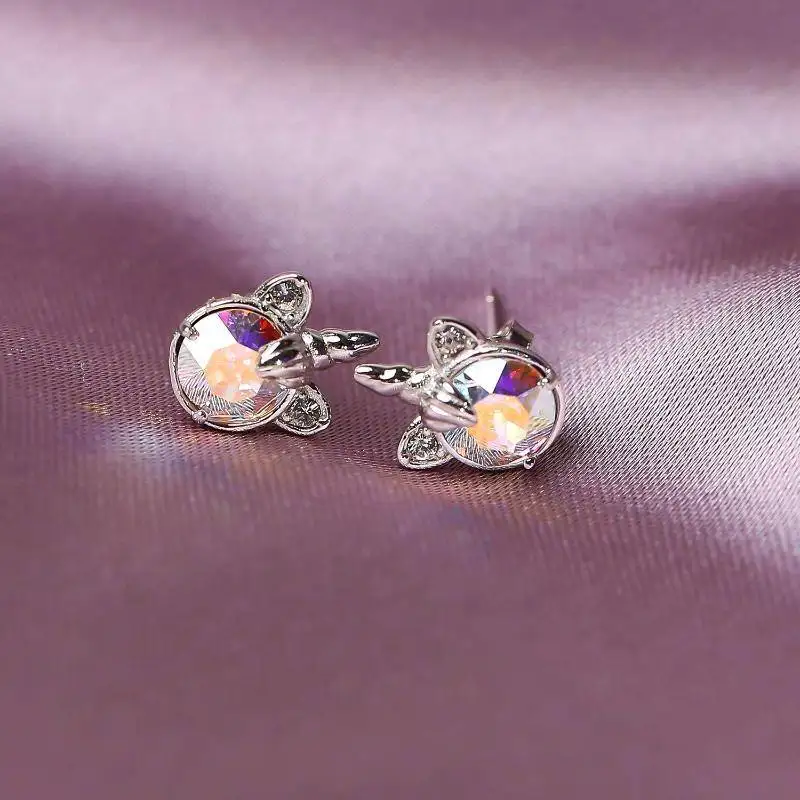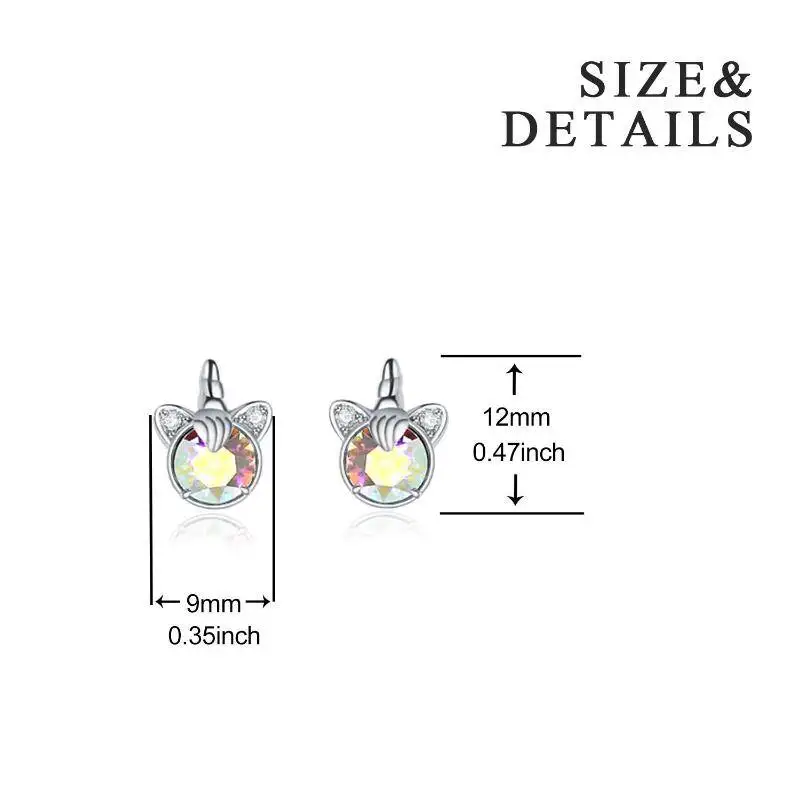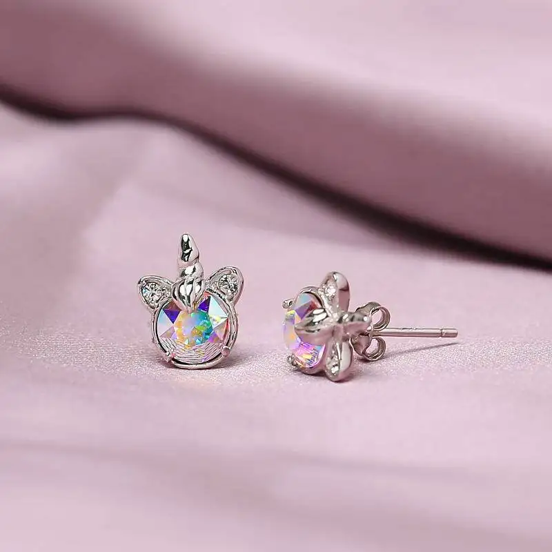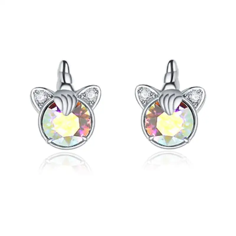 Fine Jewelry 925 Sterling Silver Rhodium Plated Austria Crystal Unicorn Stud Earrings For Women