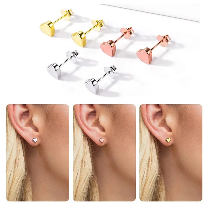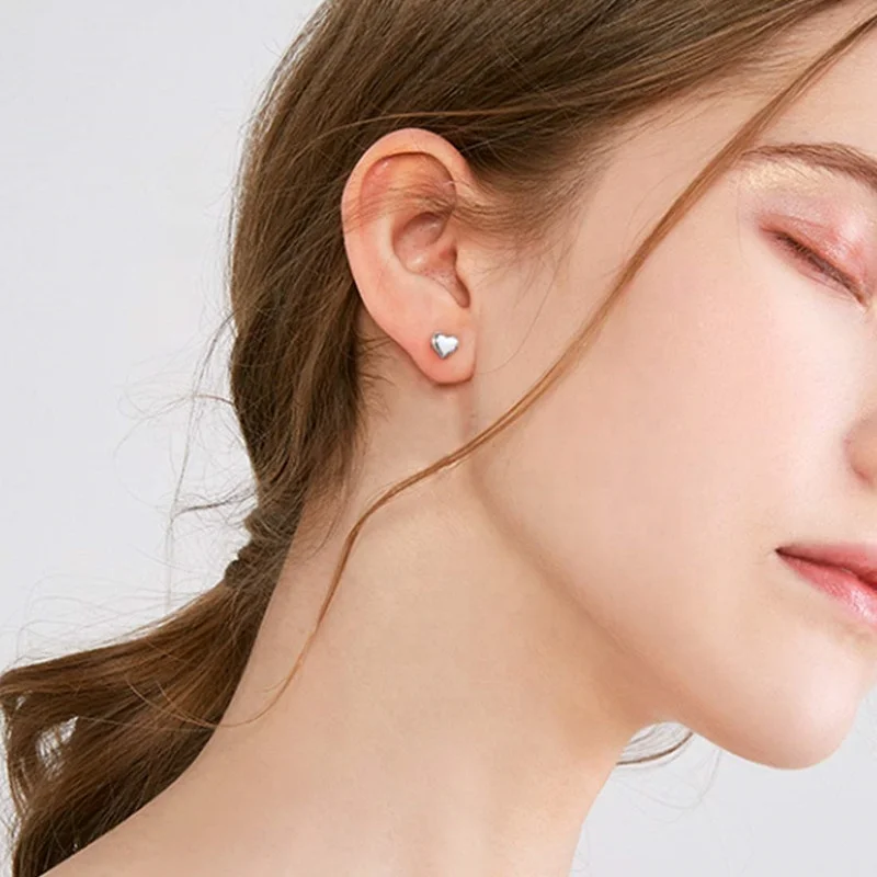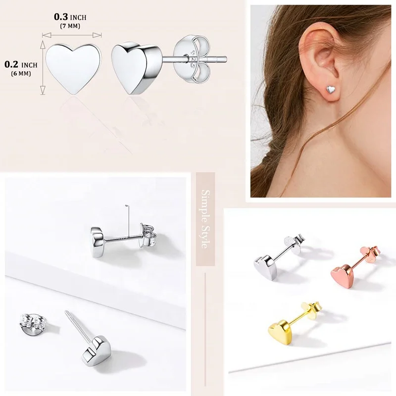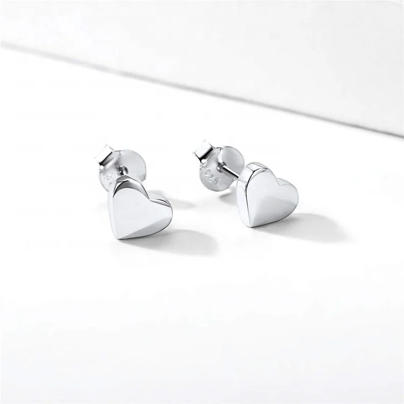 Minimalist Design 925 Sterling Silver Solid Color Plated Lovely Heart Stud Earrings For Women
