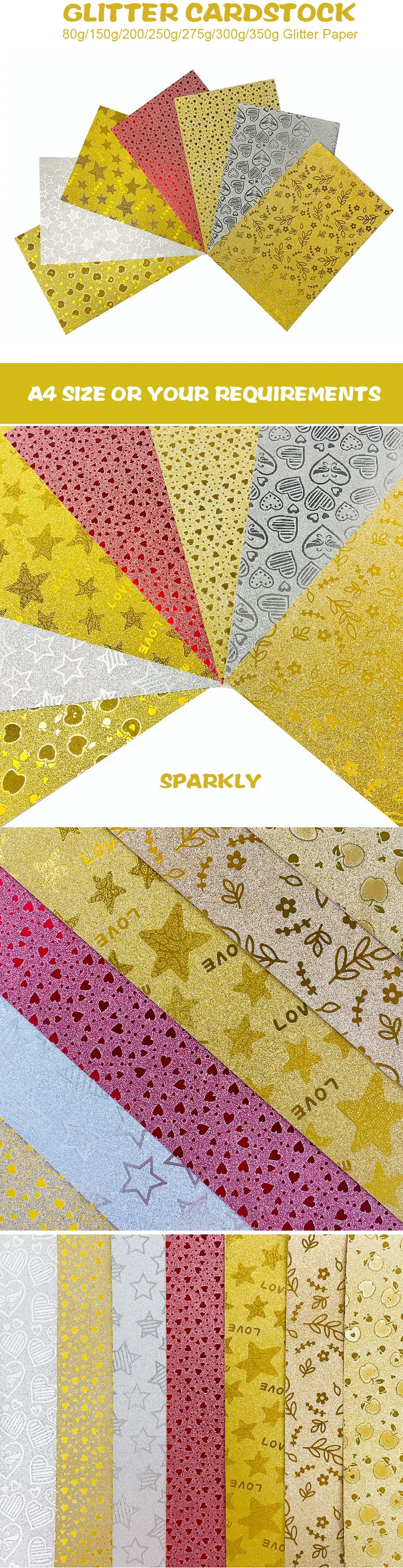 Products Name | GF Factory Price Custom Pattern DIY Crafts Scrapbook Wrapping Paper Pack Sparkly Shinny Gold Glitter Cardstock | |||||