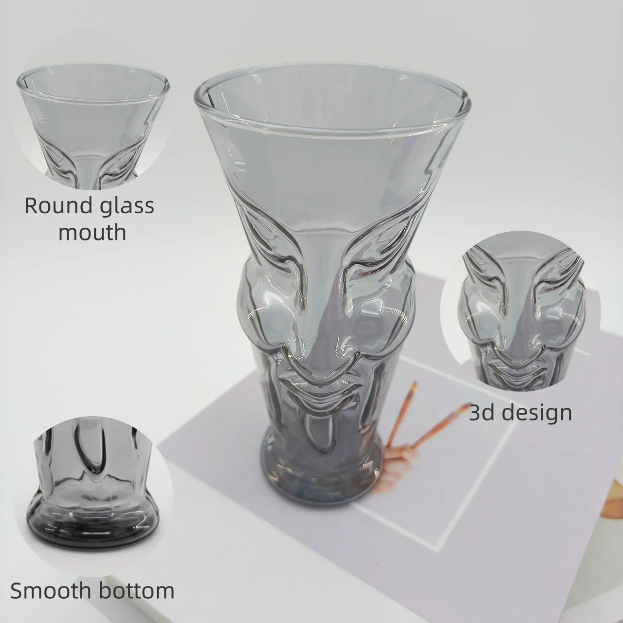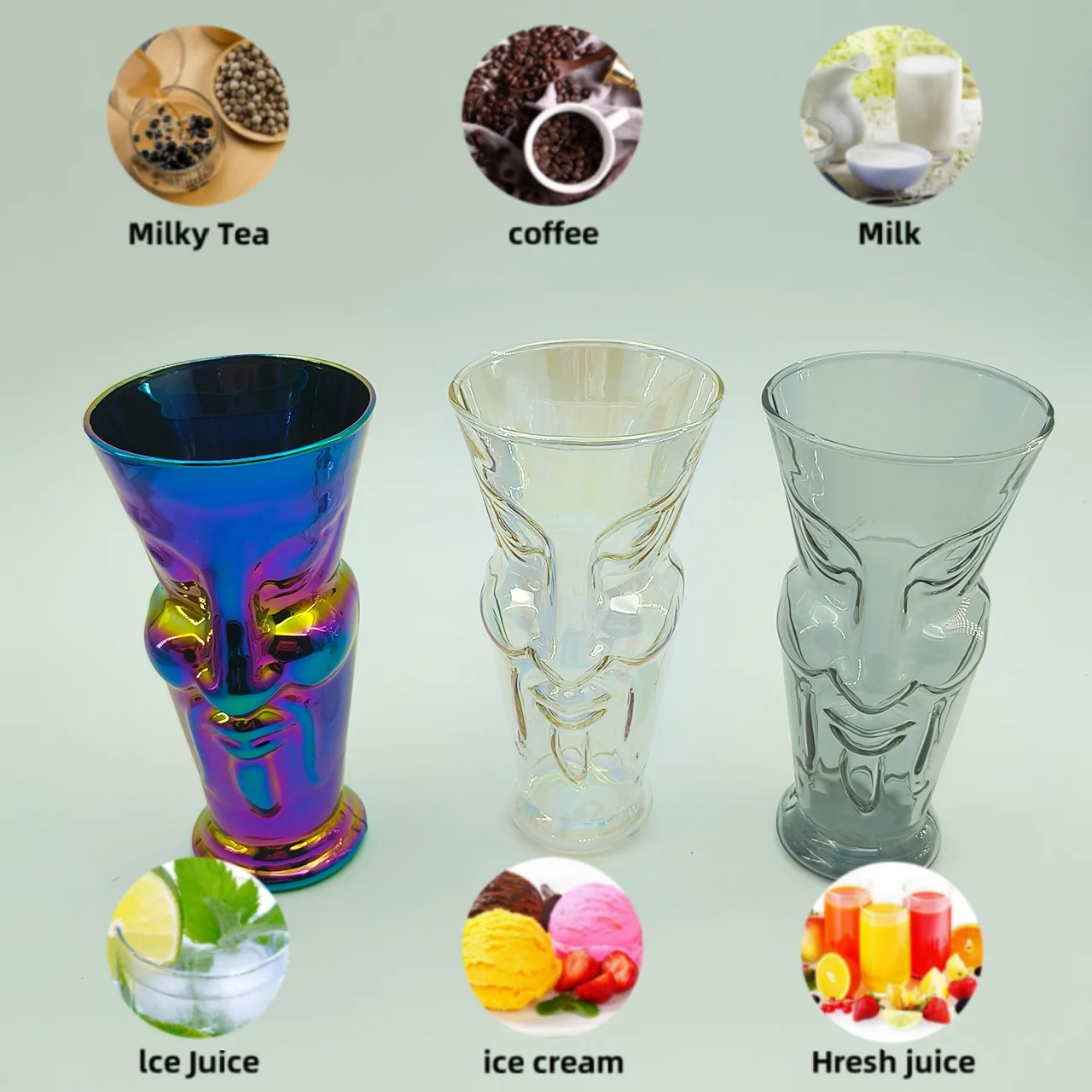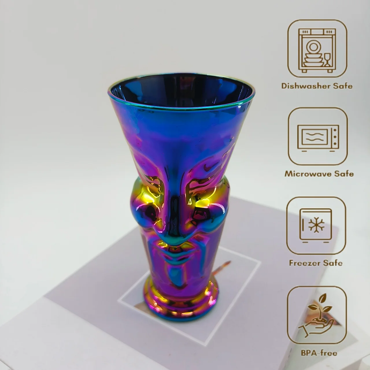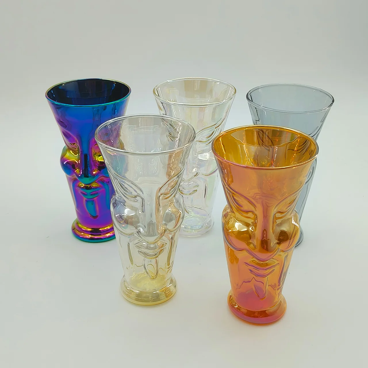 Creative Home Decorative Art Face Relief Electroplated Color Heat Resistant 350ml Borosilicate Glass Coffee Beer Cup For Gift