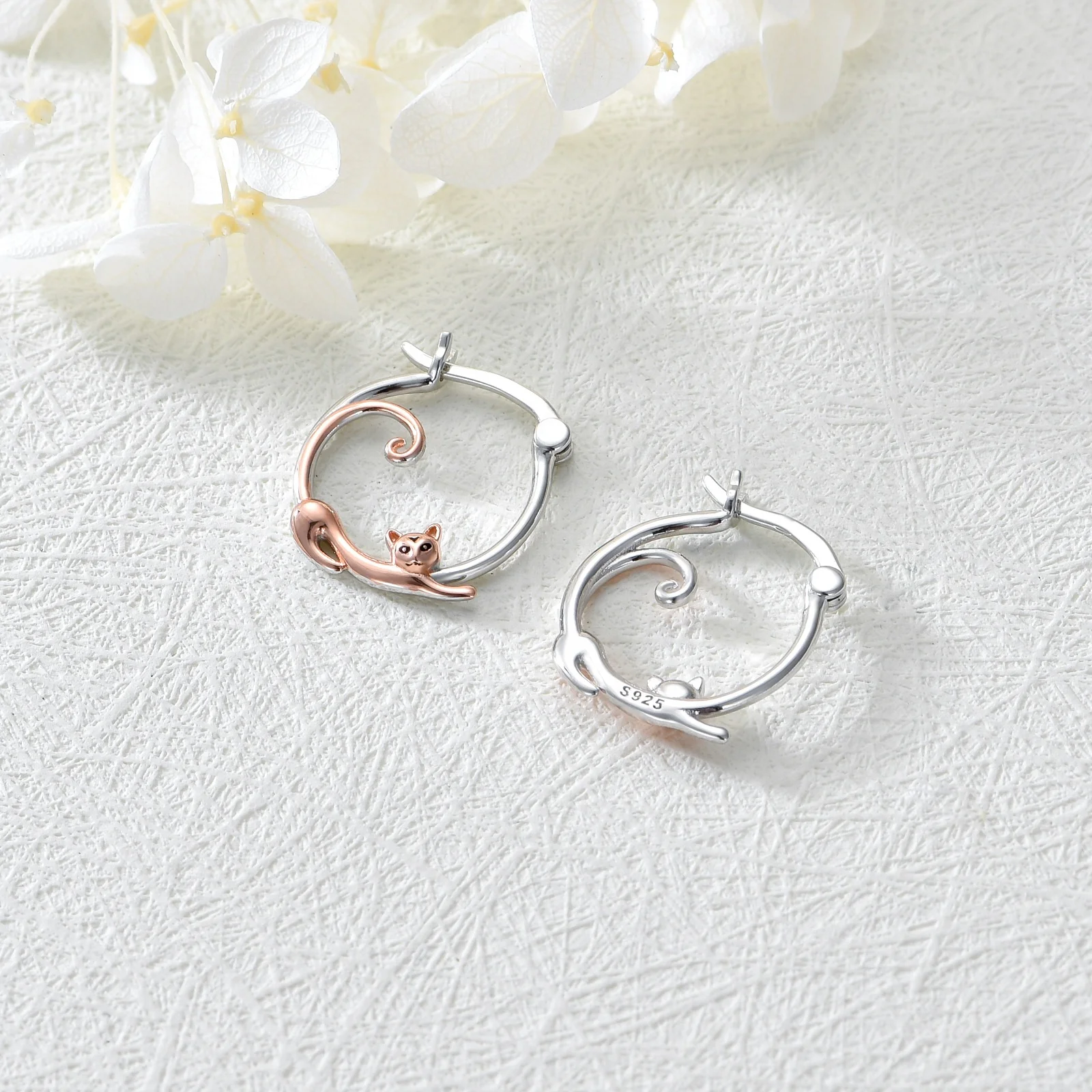 YFN Factory Sale Jewelry 925 Sterling Silver Cute Animal Cat Hoop Earrings For Women