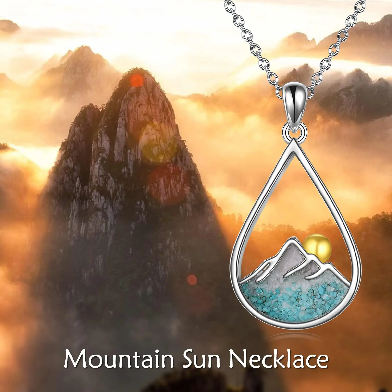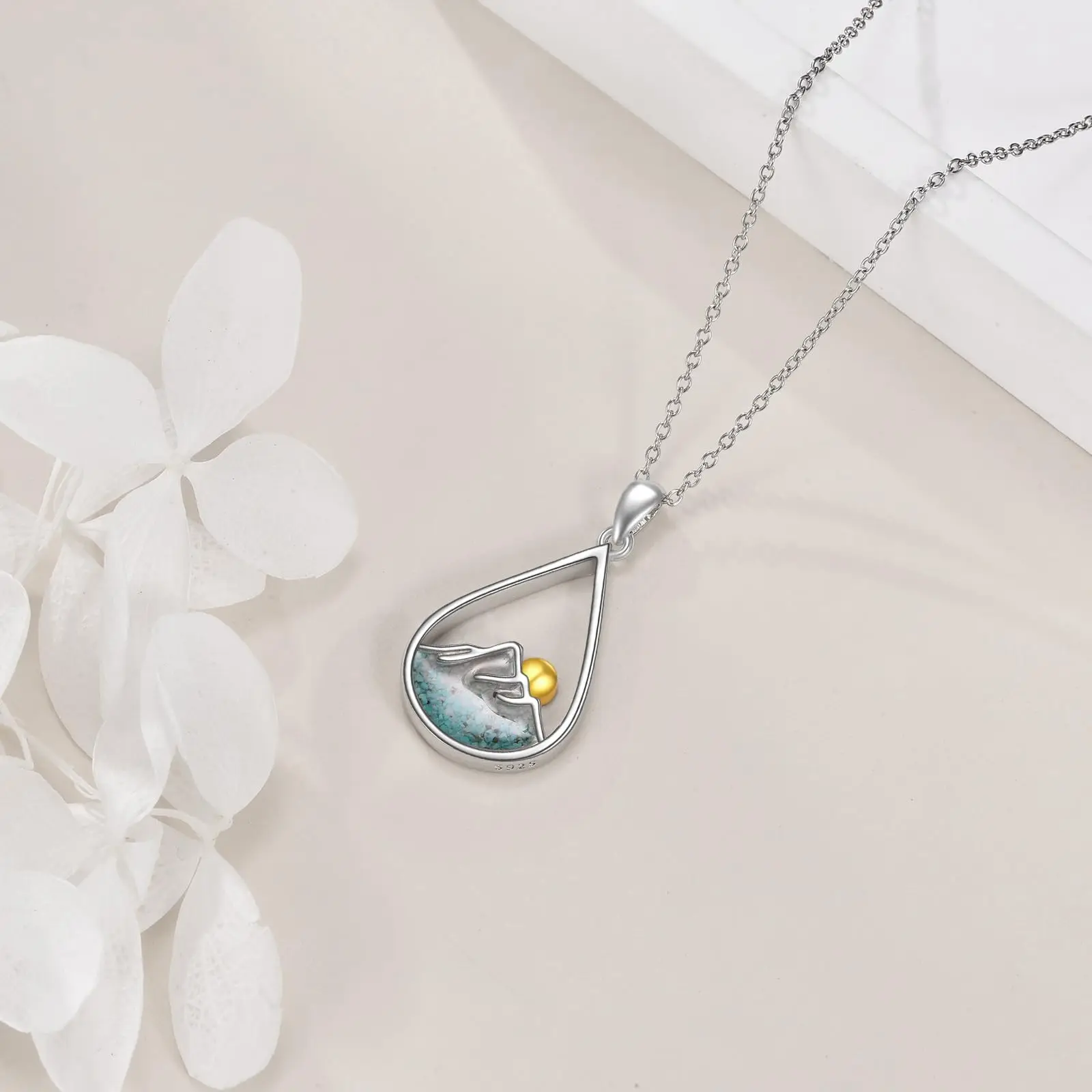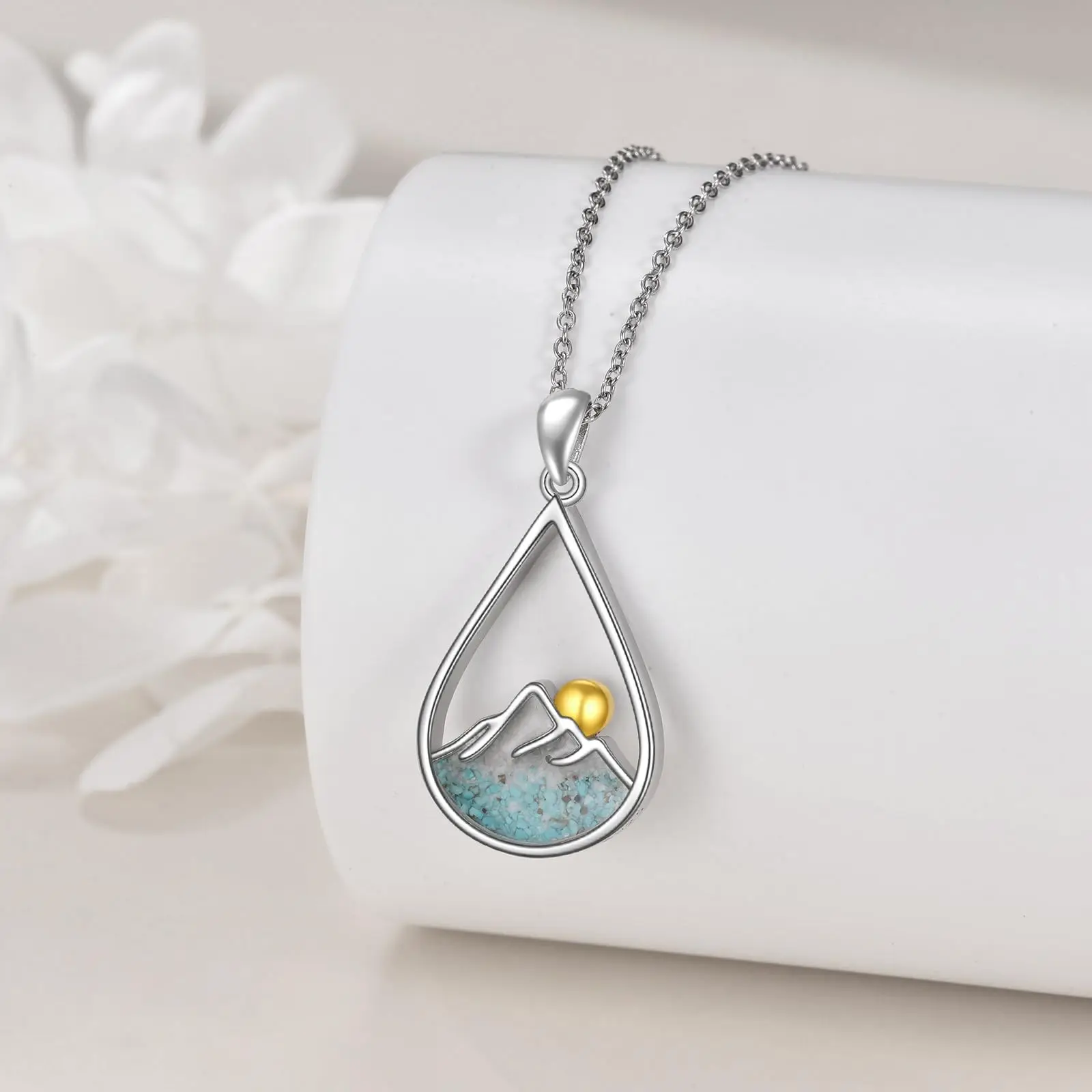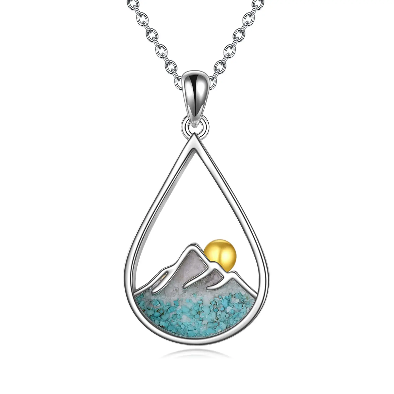 Turquoise Stone Mountain Teardrop Necklace 925 Sterling Silver Jewellery Necklace Gifts for Women Girls