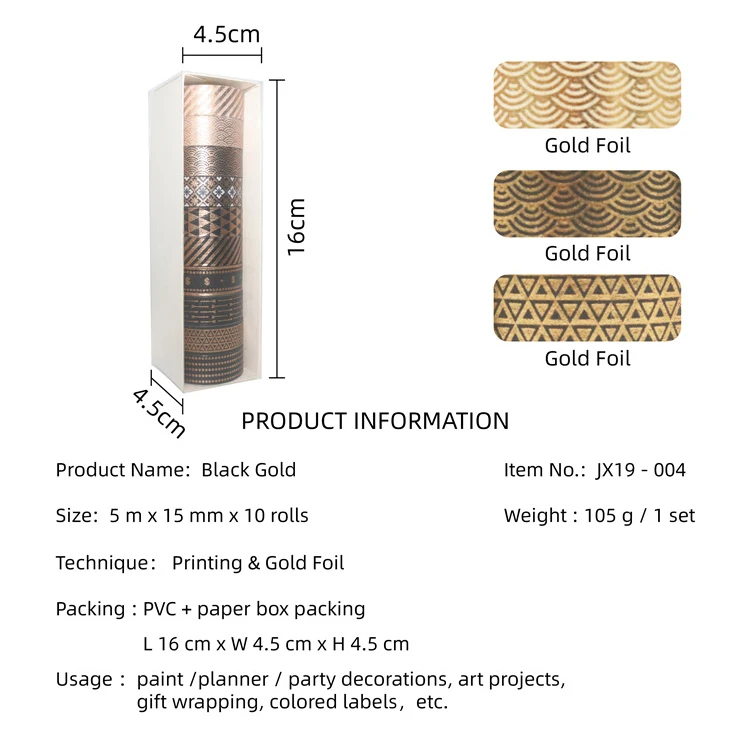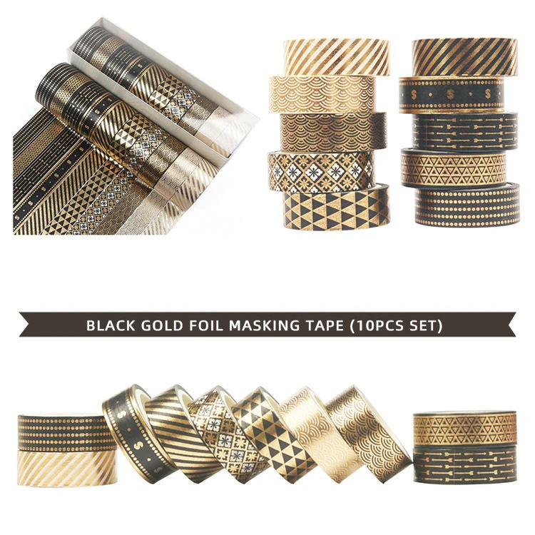 Products Name | GF Popular 10 Rolls Black Basic Skinny Gold Foil Print Gift Wrapping Decorative Masking Tapes for Arts DIY Crafts Journals | |||||
