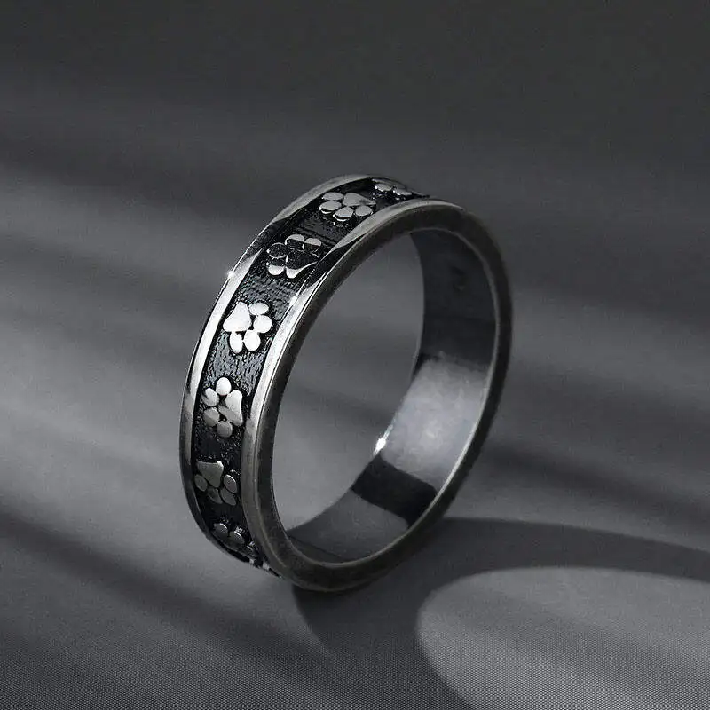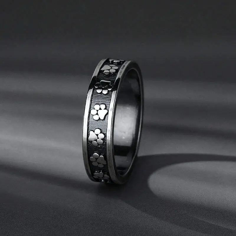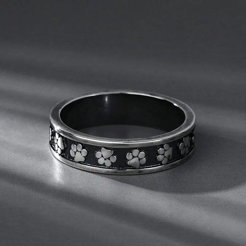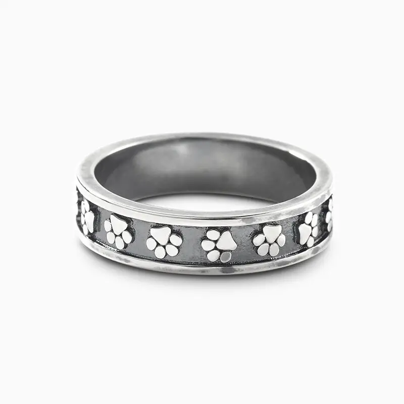 Wholesale 925 Sterling Silver Oxidized Custom Animal Pet Lover Cat Paw Print Ring