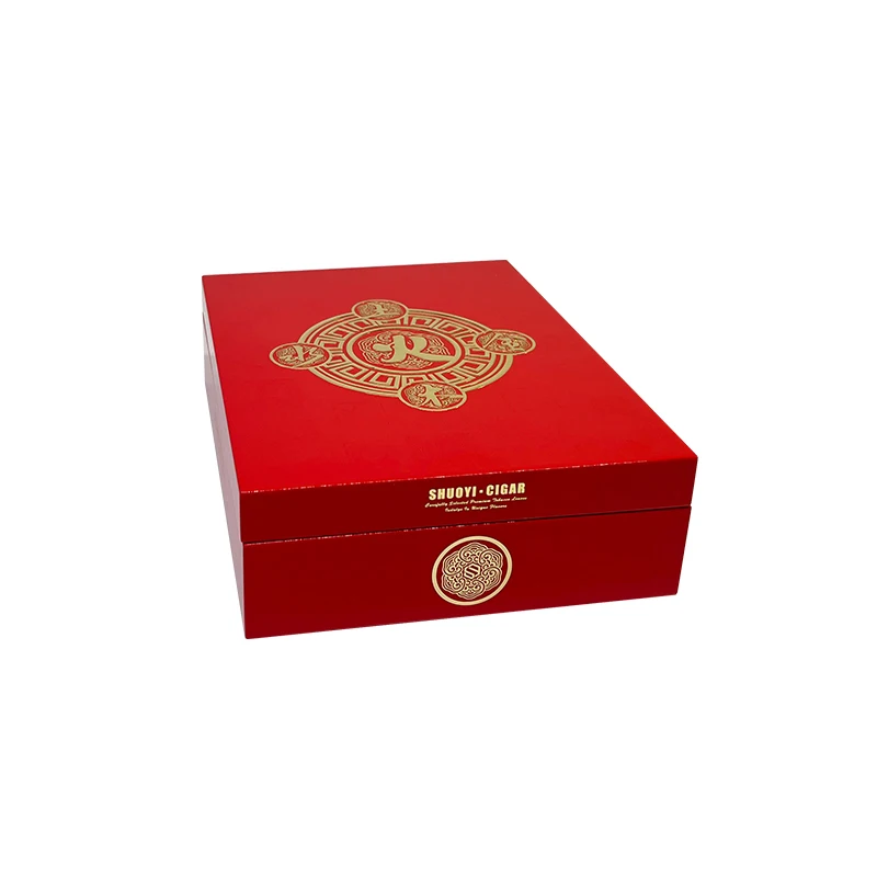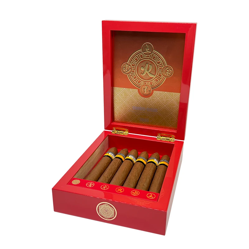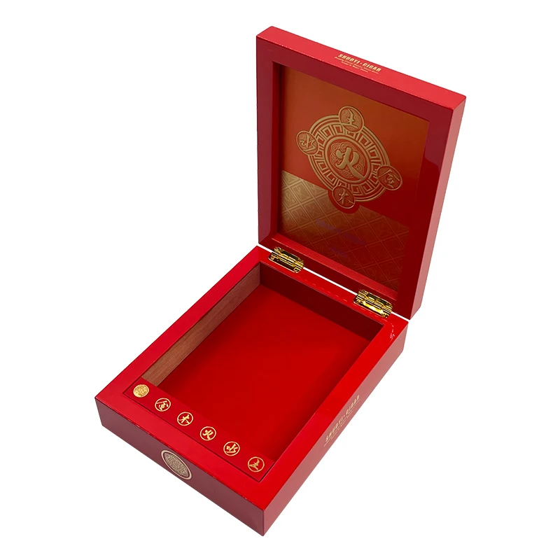 Red golden LOGO cigar boxes packaging for 5 Cigars Humidor wholesale cigar wood box