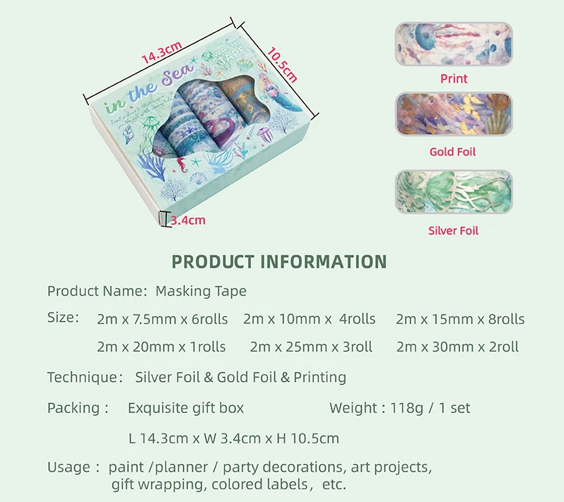 Products Name | GF Factory Wholesale 24 Rolls Sea Ocean Gold Foil Washi Tape Set DIY Arts Crafts Masking Decoration Tapes | |||||