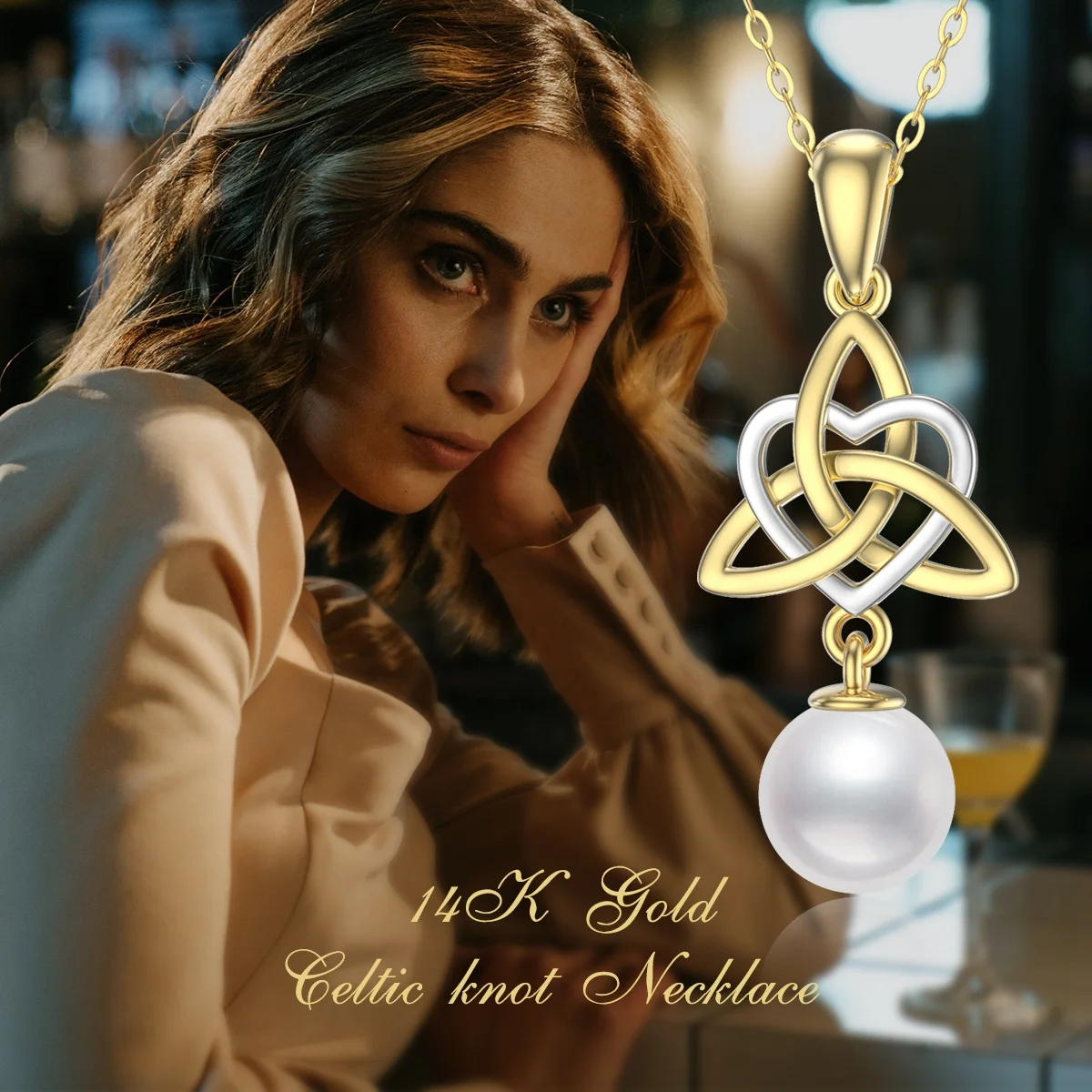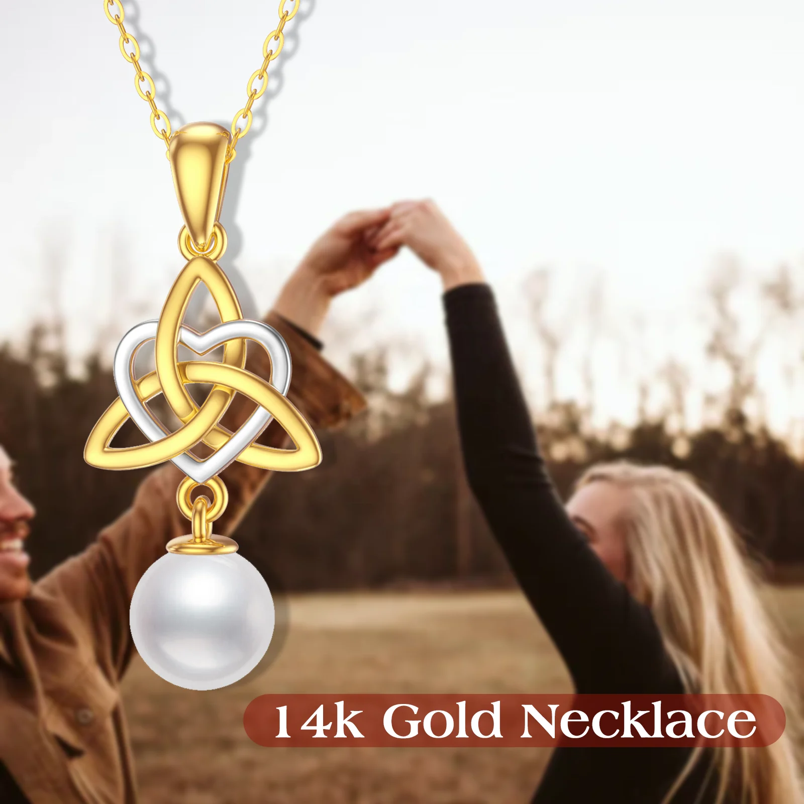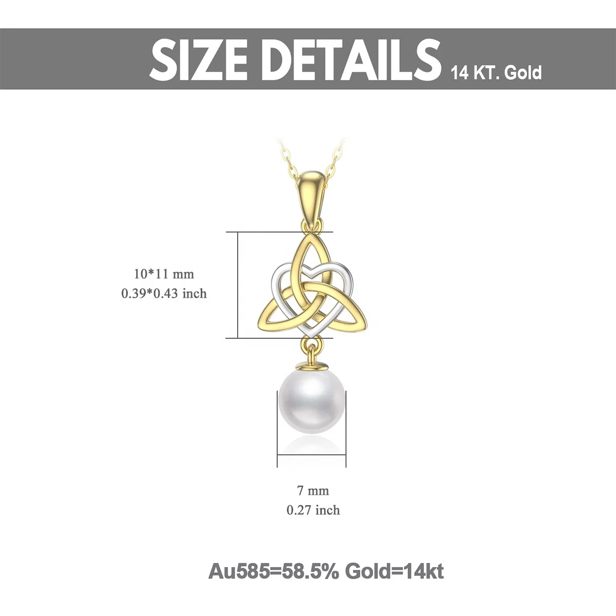 Name | 14K Solid Yellow Gold Irish Celtic Knot Pendant Heart Necklace with Pearl |