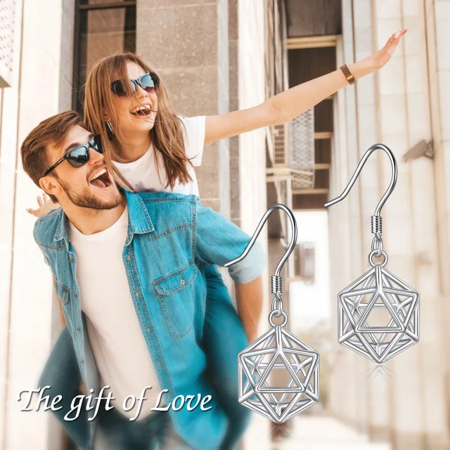 Minimalist Design 925 Sterling Silver Hallow Geometric Hook Pendant Earrings
