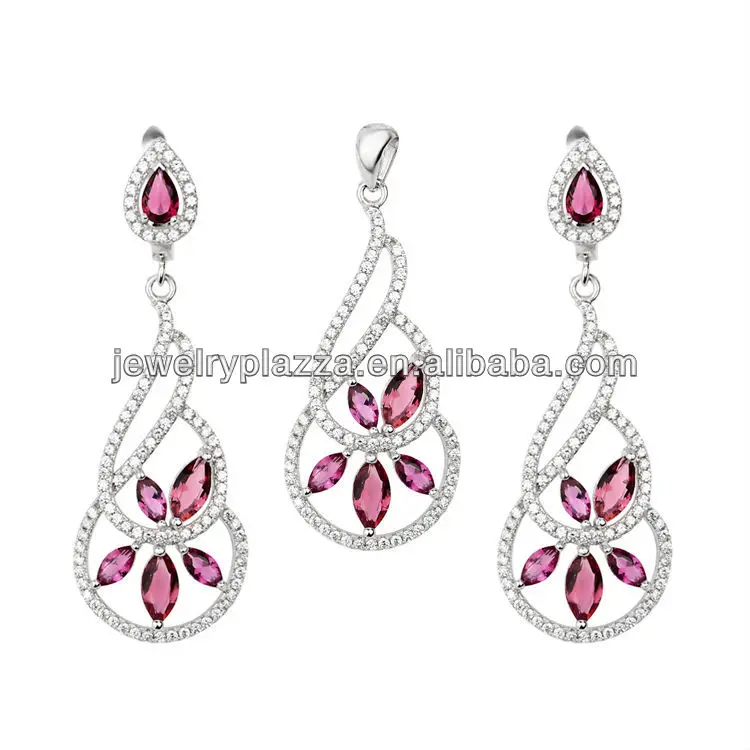 Wholesale Jewelry Set 925 Sterling Silver Crystal pendant Necklace and Earring Sets