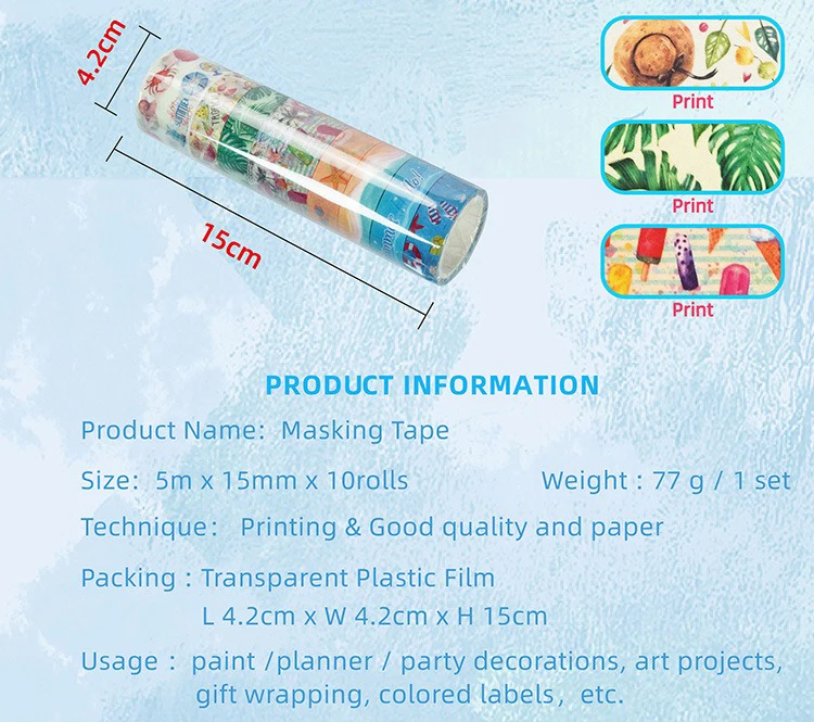 Products Name | GF Tropical Style Sea Animals Ocean Decorative Tape 10 Rolls Summer Hawaii Beach Washi Tape Set Washi Masking Tape for Scrapbook | |||||