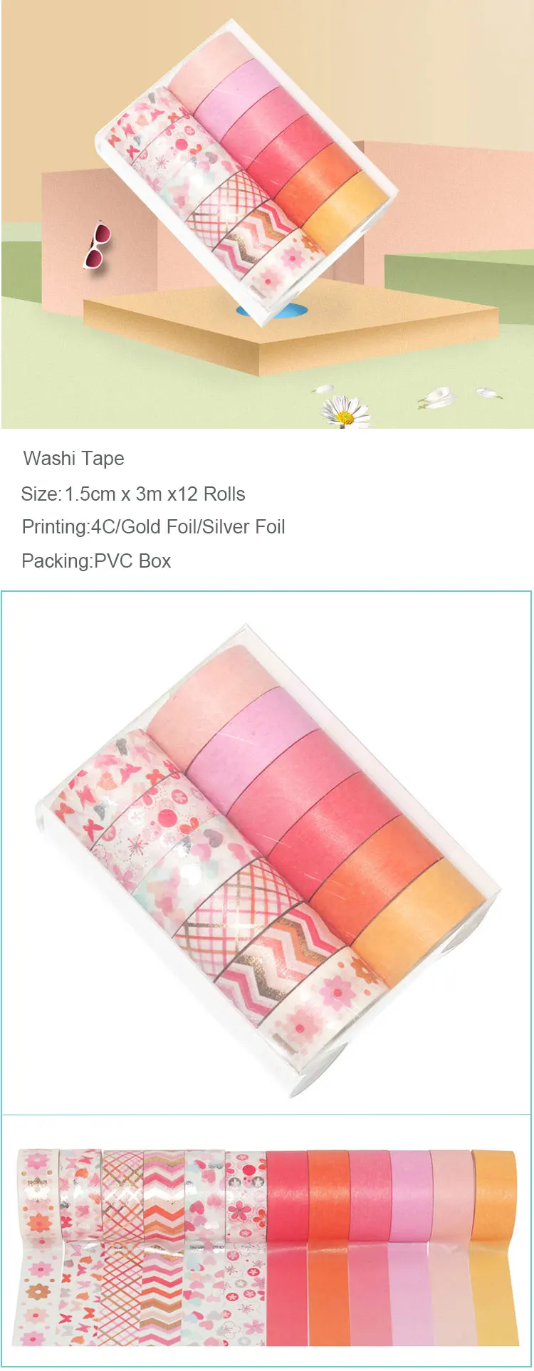 Products Name | GF Hot Sale DIY Gold Silver Foil Washi Tape Set Custom Printed Masking Washi Tape | |||||