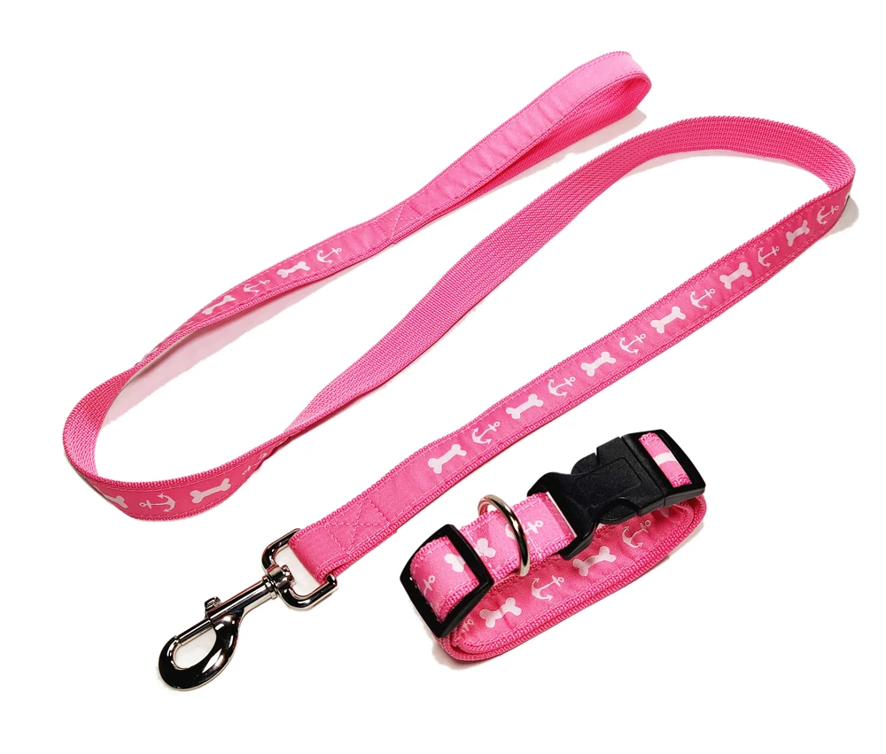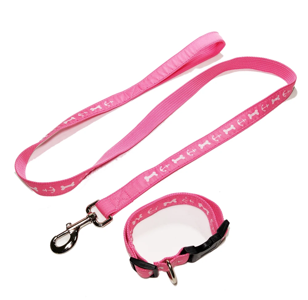 product name | Personalized Pink Woven Satin Logo Polyester Dog Training Collars and Leashes Set |