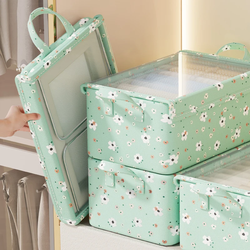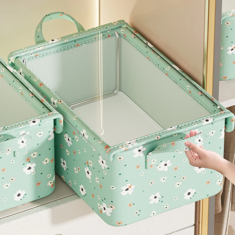 Bedroom Closet Folding Fabric Storage Boxes Bins With Dust Cover And Frame Children Clothes Organizer Jeans Storage Box
