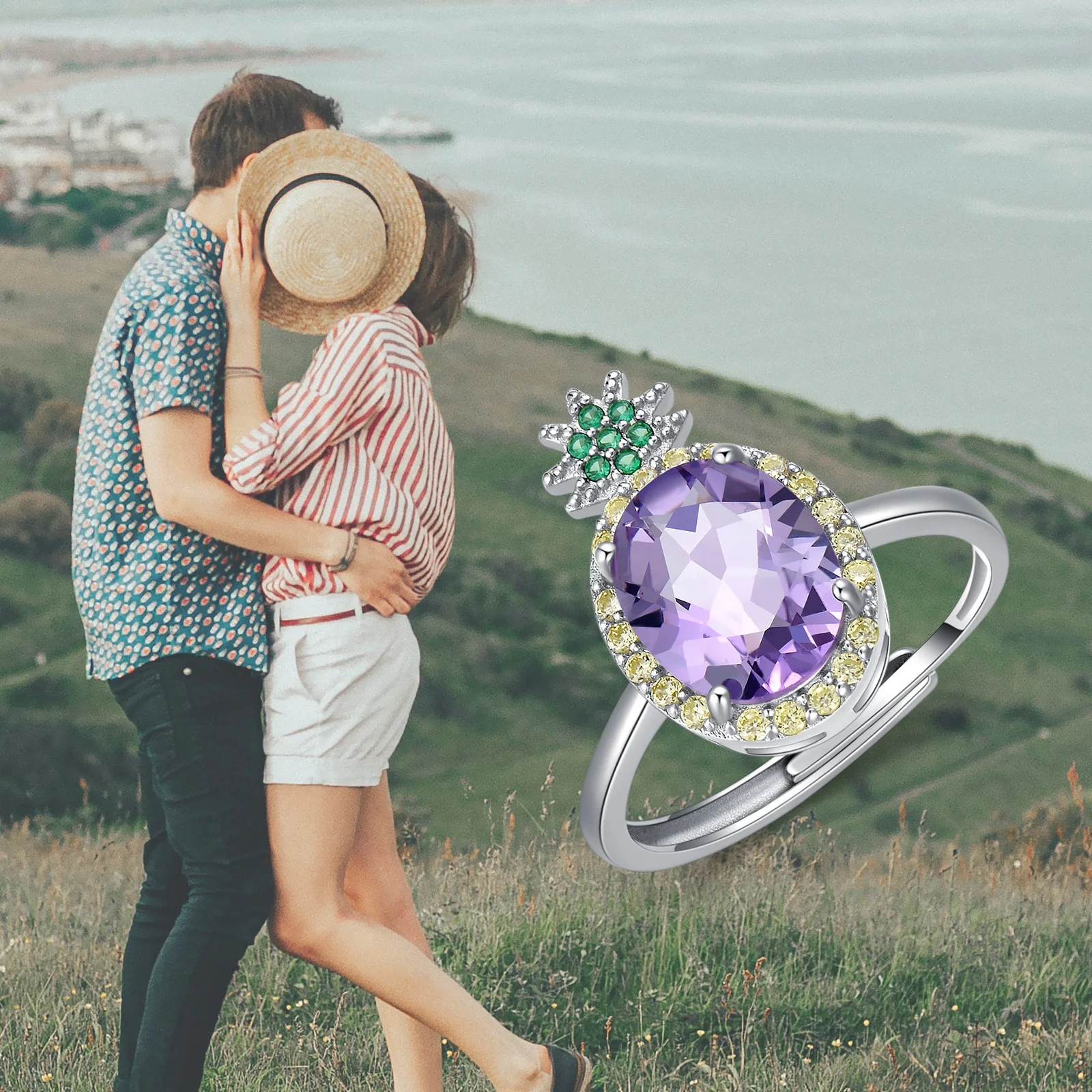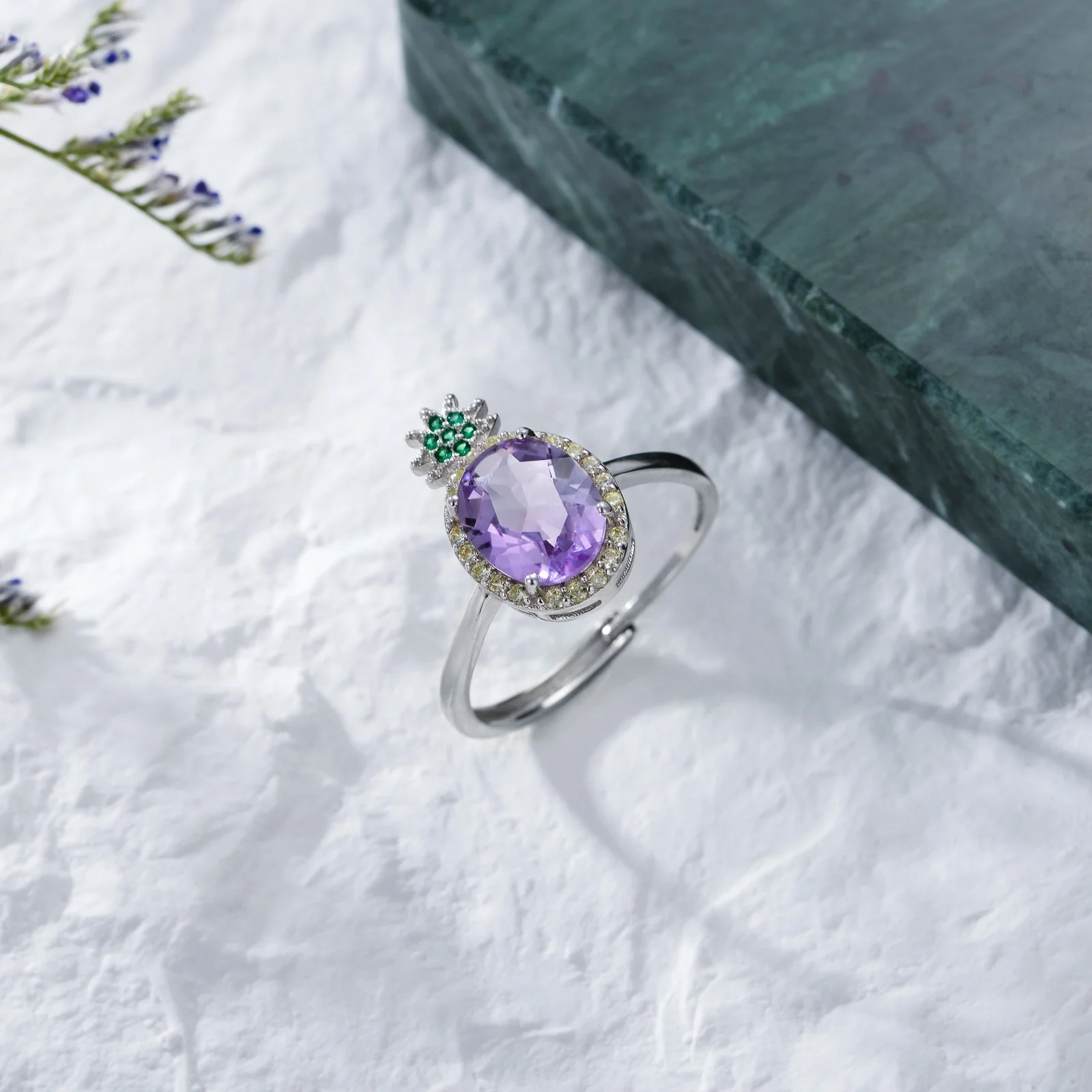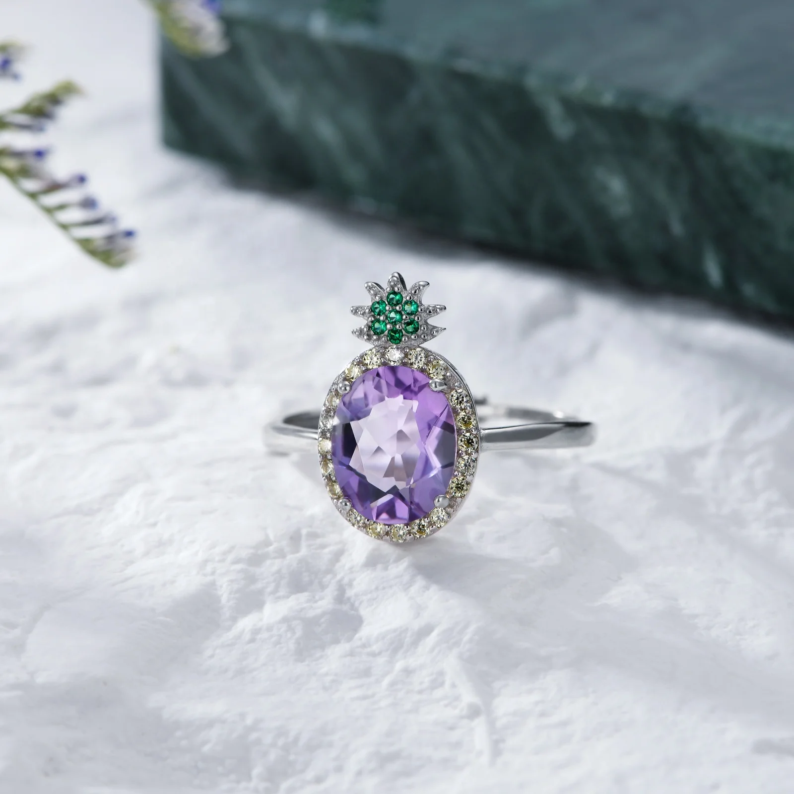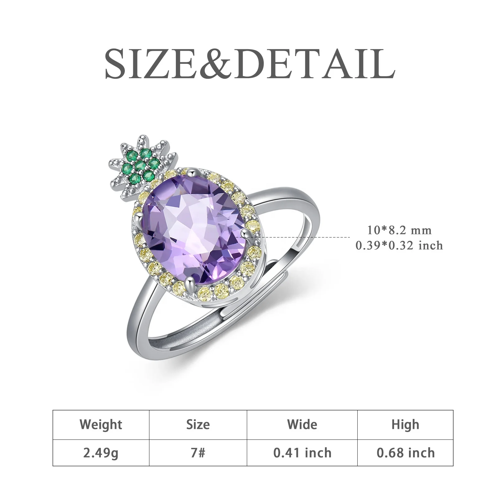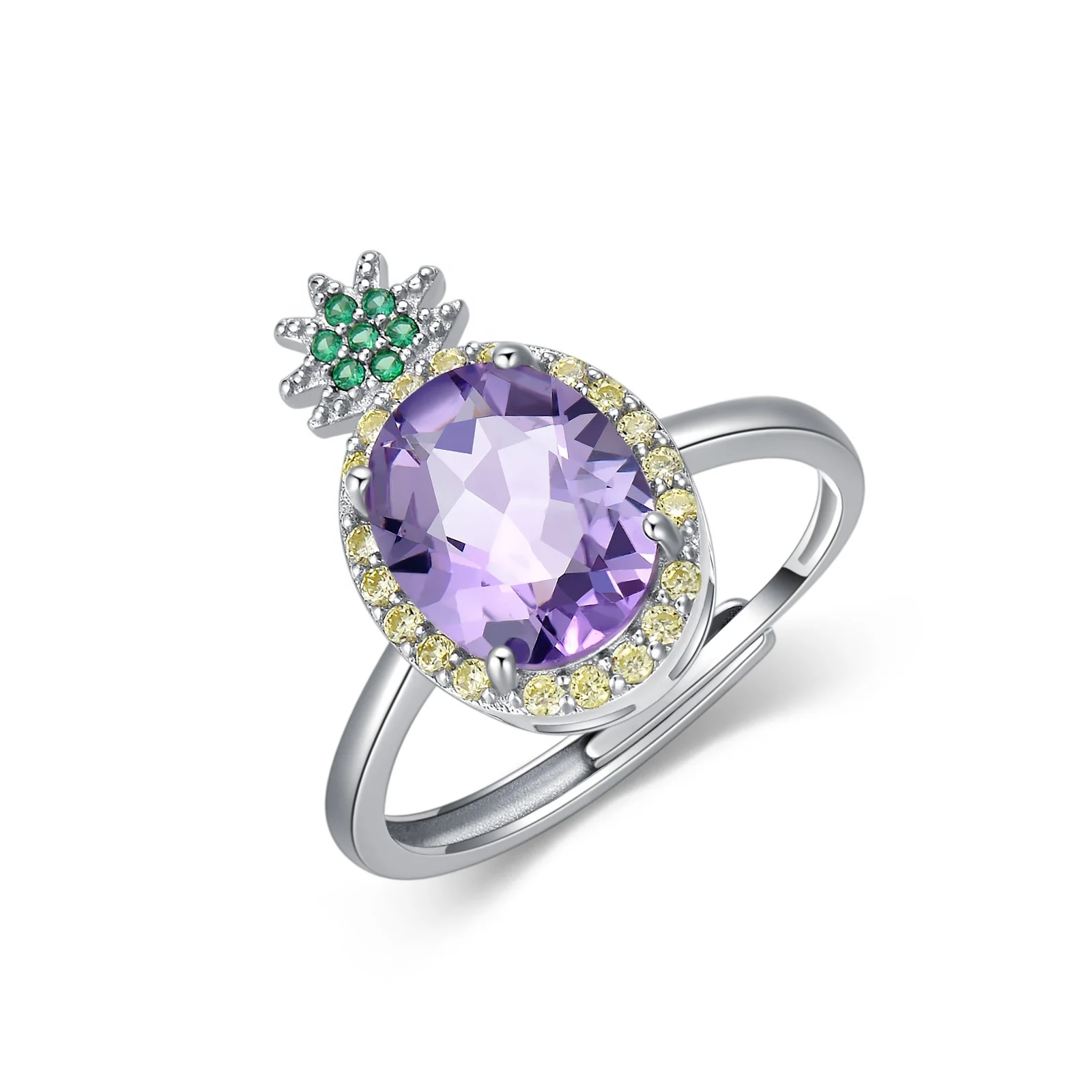 Product name | White Gold Plated 925 Sterling Silver and Purple Crystal Birthstone Pineapple Ring |