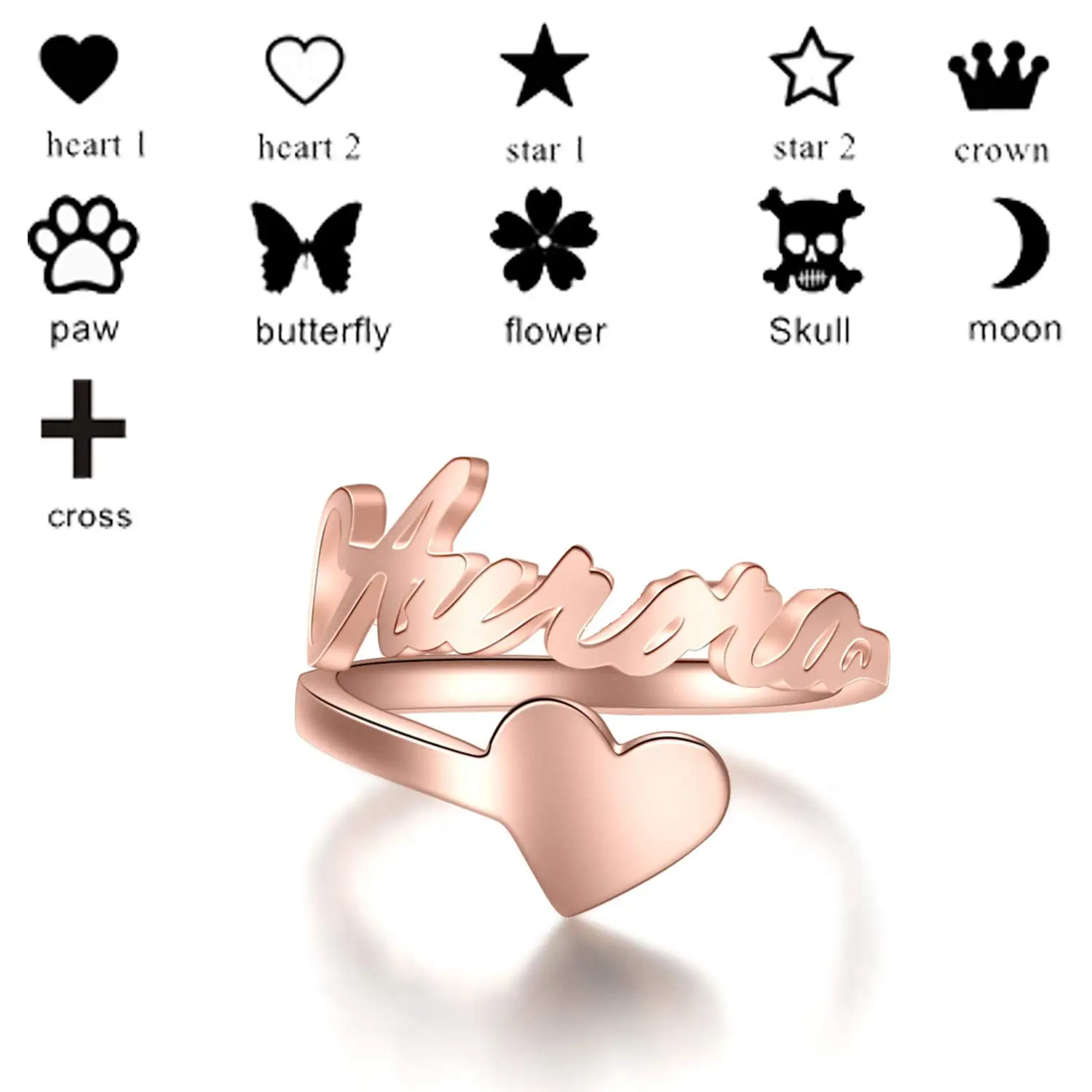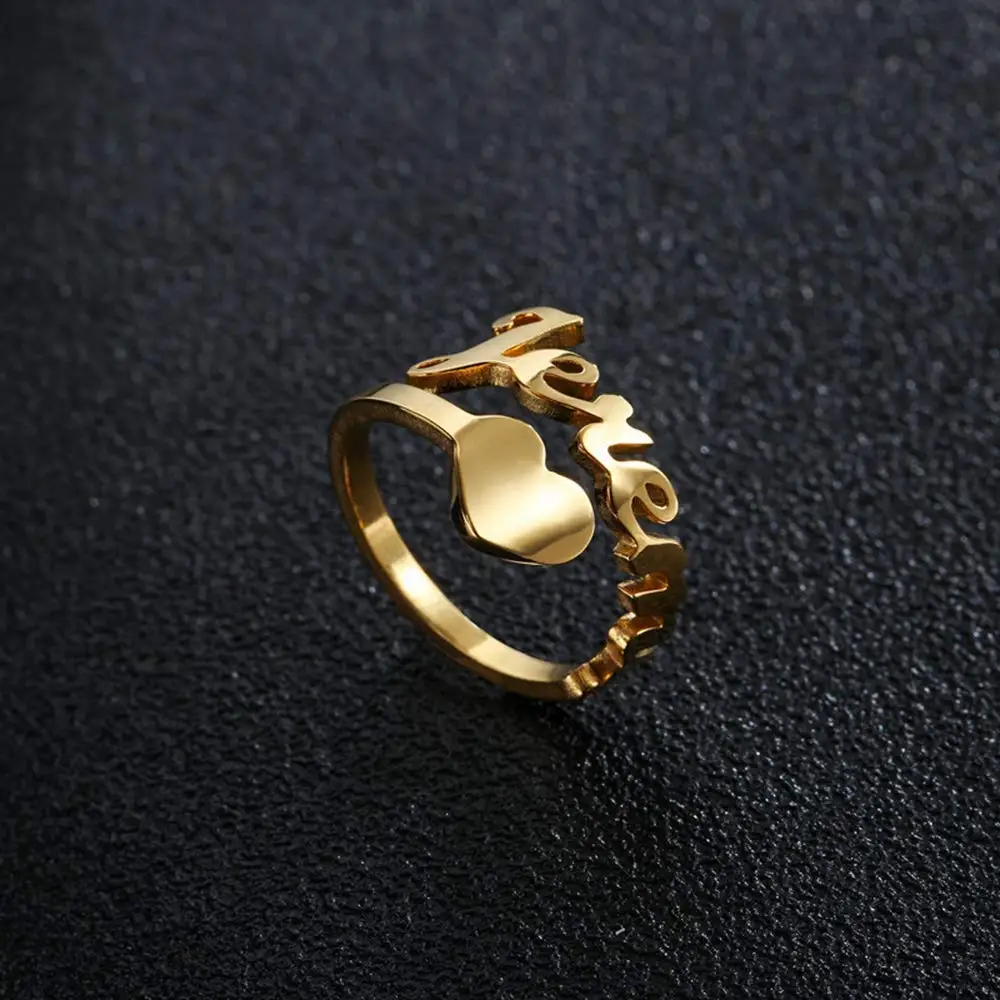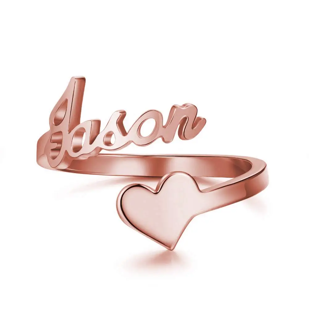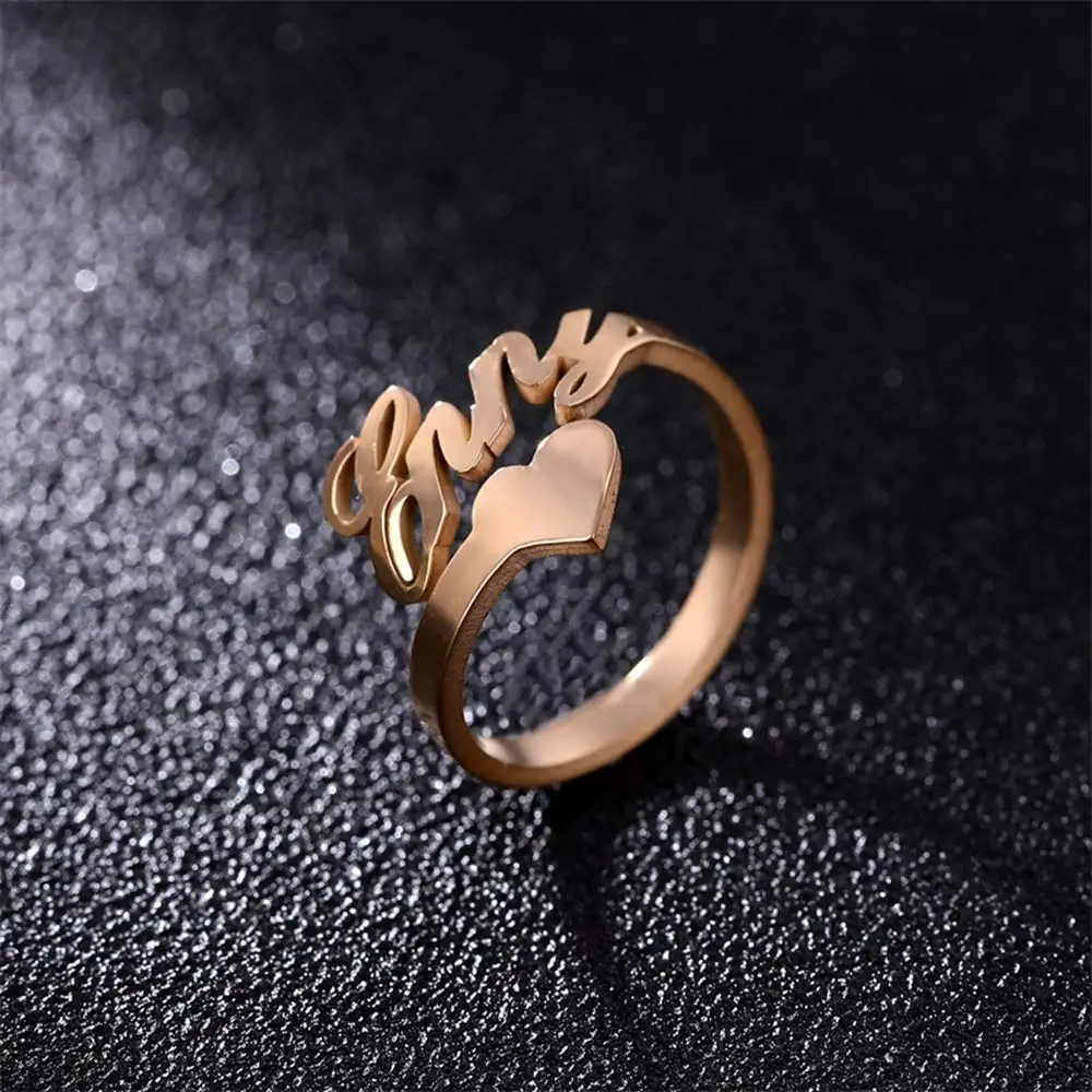 Fine Jewelry 925 Sterling Silver Custom Name Ring Personalized Rose Gold Heart Name Ring