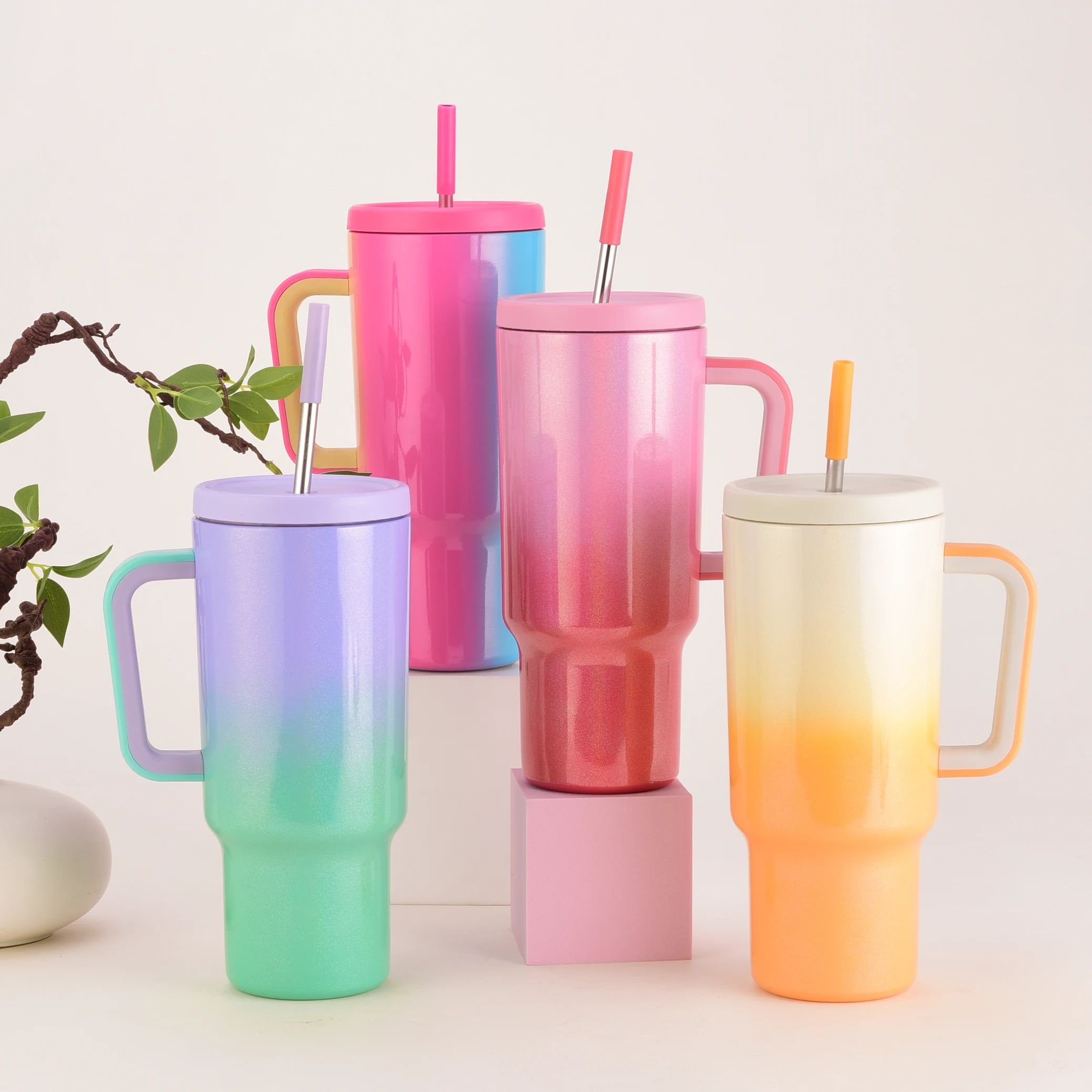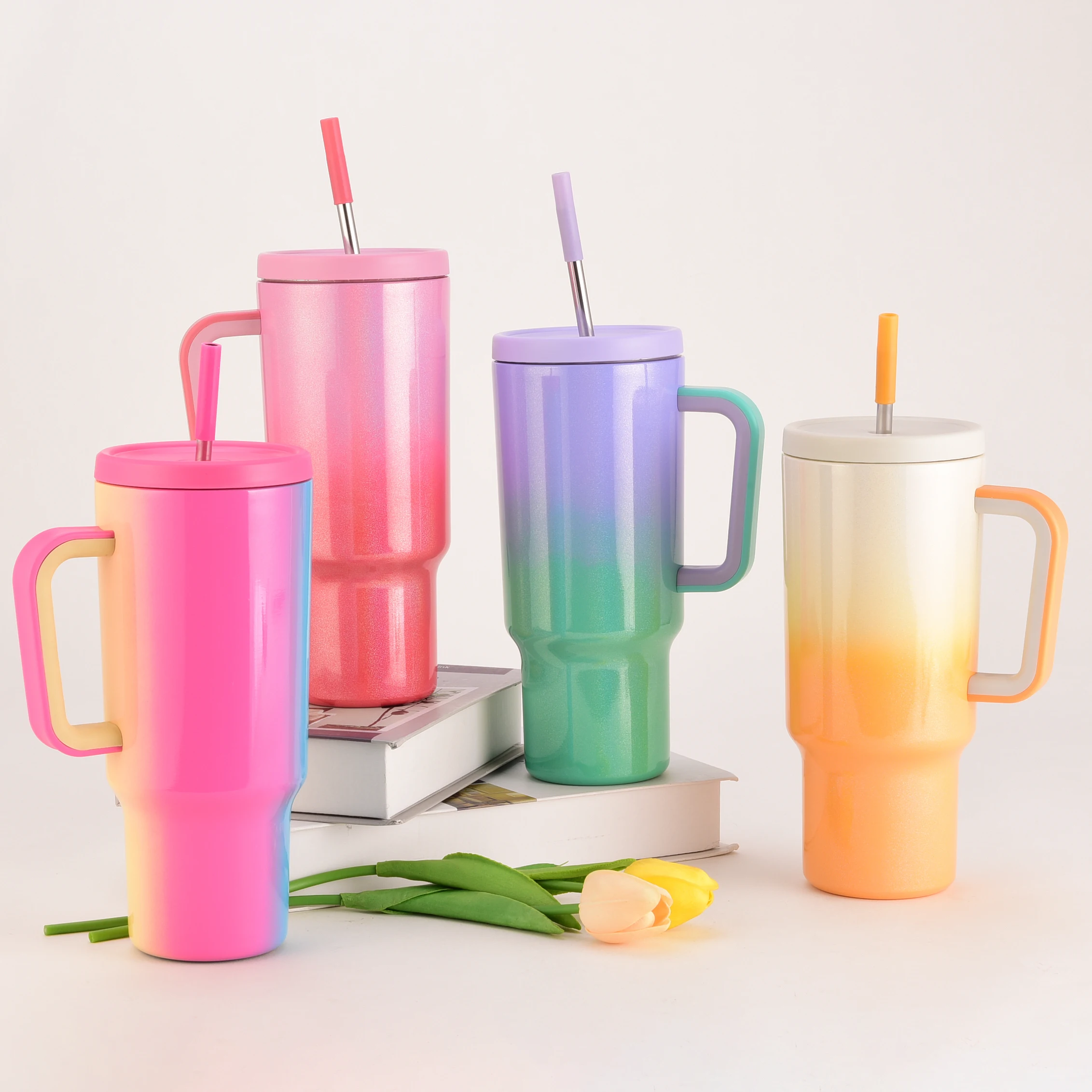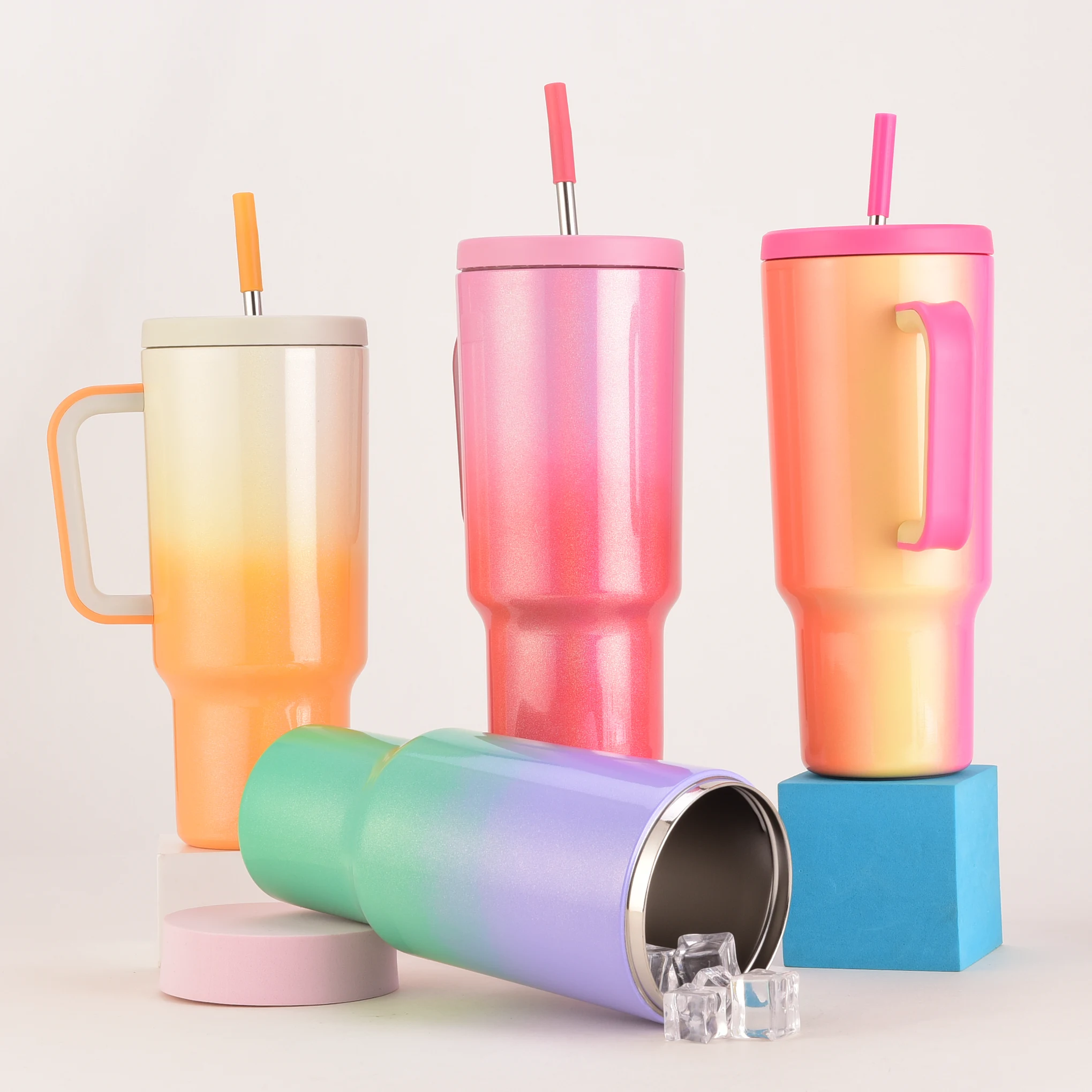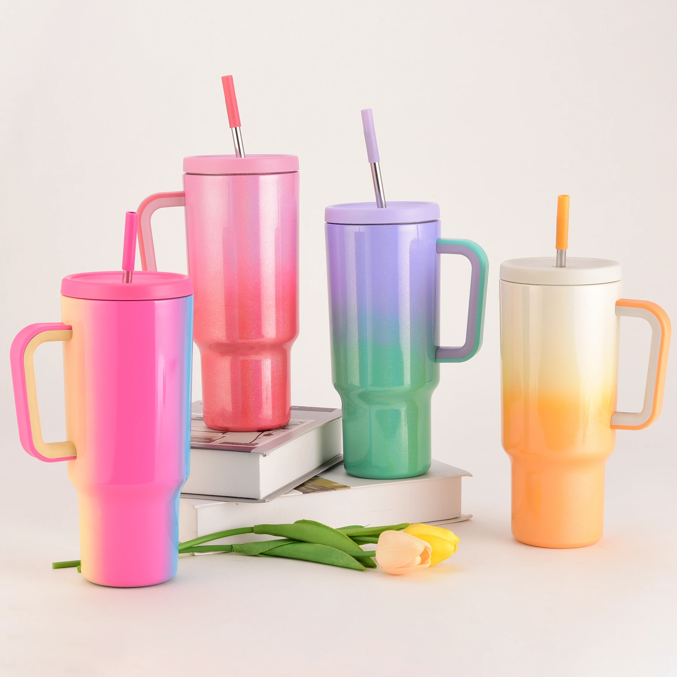 High Quality Stainless Steel Thermal Straw Tumbler Cup Cute Double Wall Insulated Rainbow Tumblers
