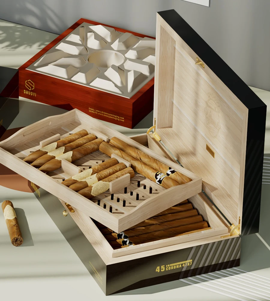 Custom Cigar Boxes Manufacturer Cedar Wooden Cigar Humidor Box