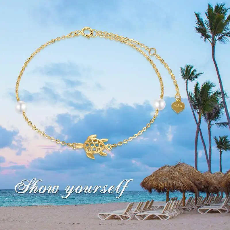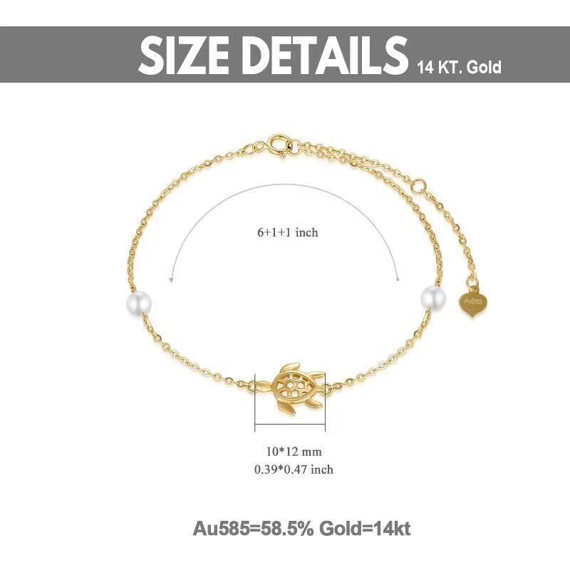 Item | Freshwater Cultured Pearl Wrist Jewelry 14k Gold Custom Sea Turtle 10.2 inch Bracelets For Women Girls |