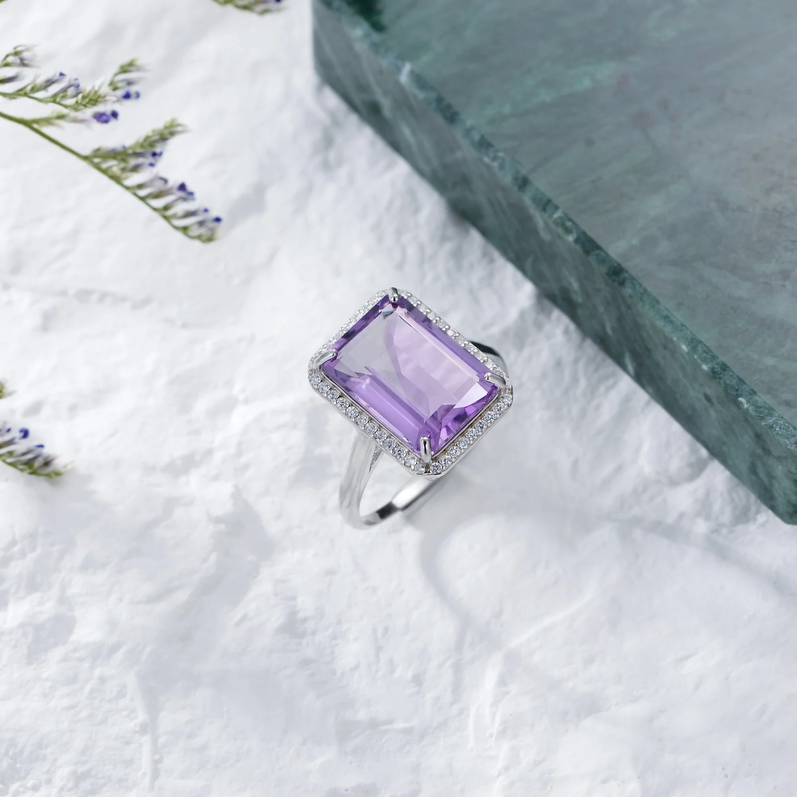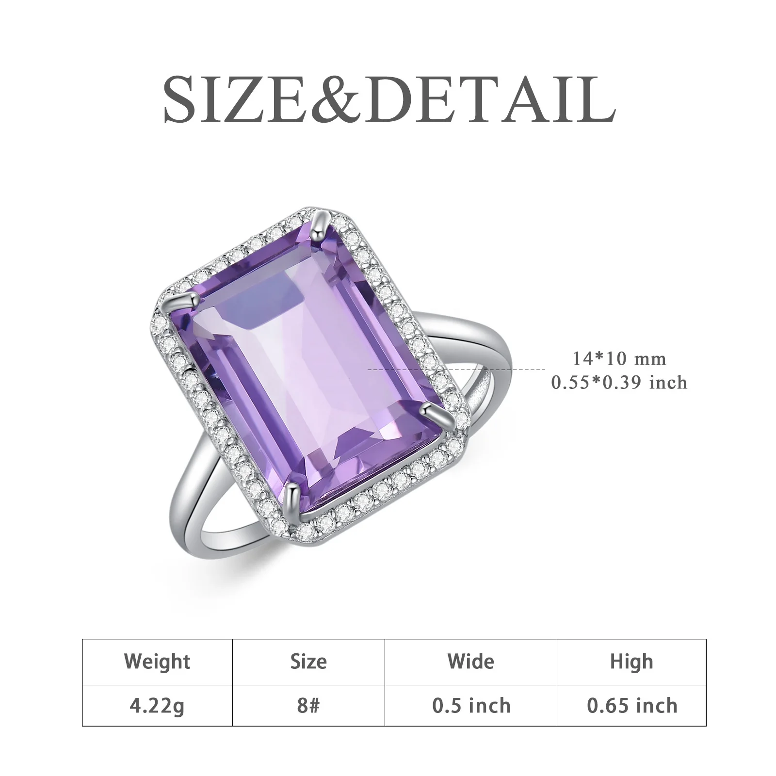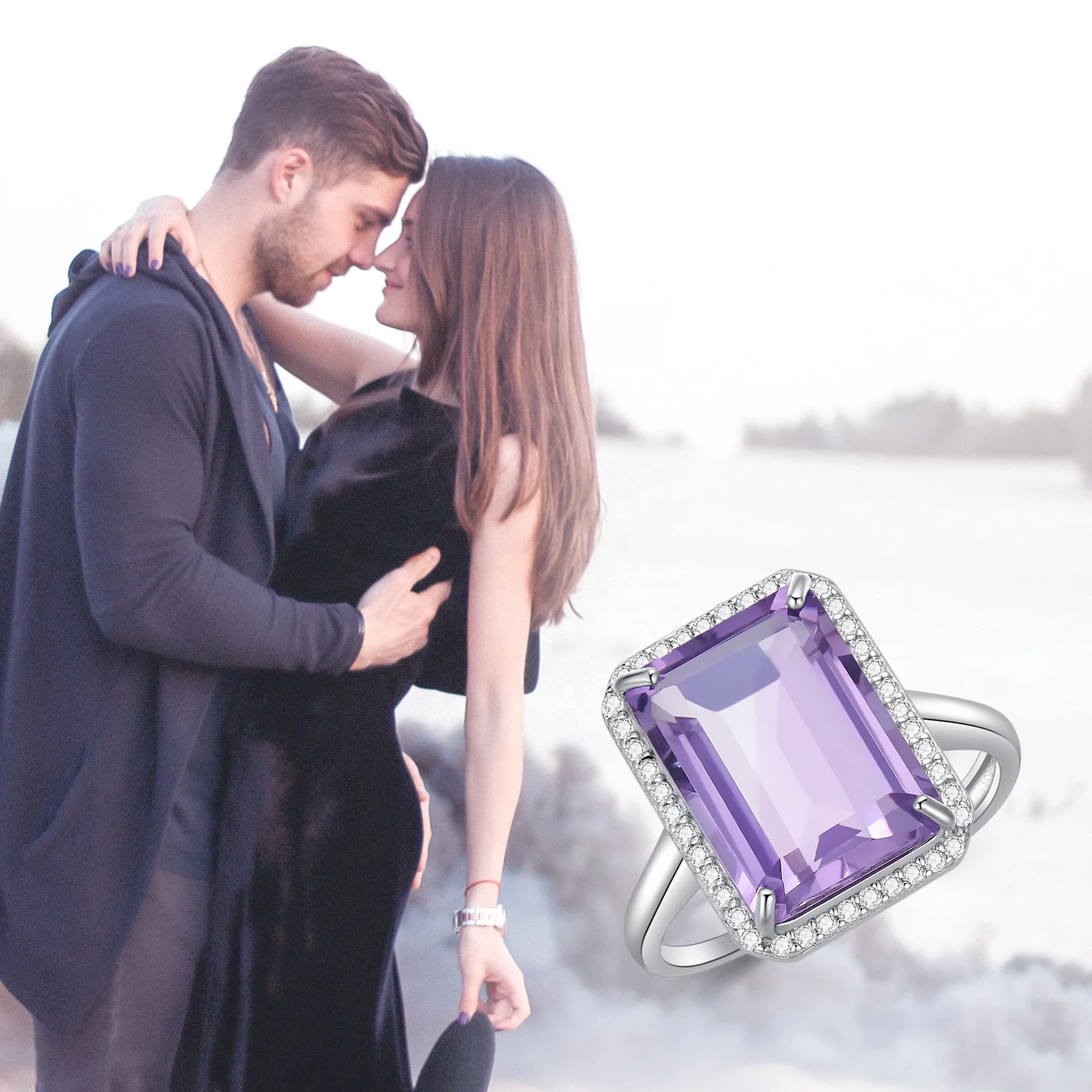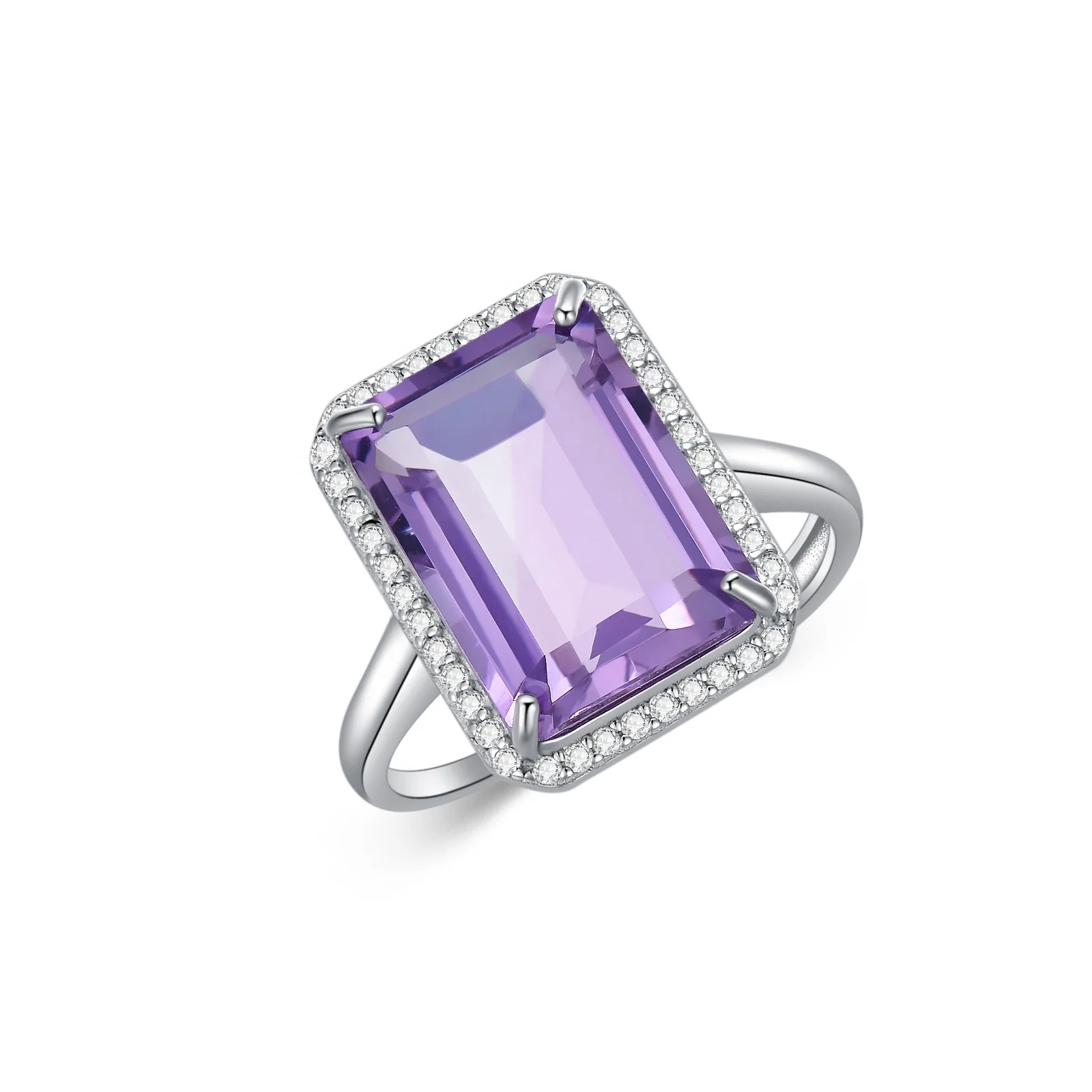 Product name | Fine Jewellery Wedding Adjustable 925 Sterling Silver White Gold Plated Amethyst Crystal Promise Rings |