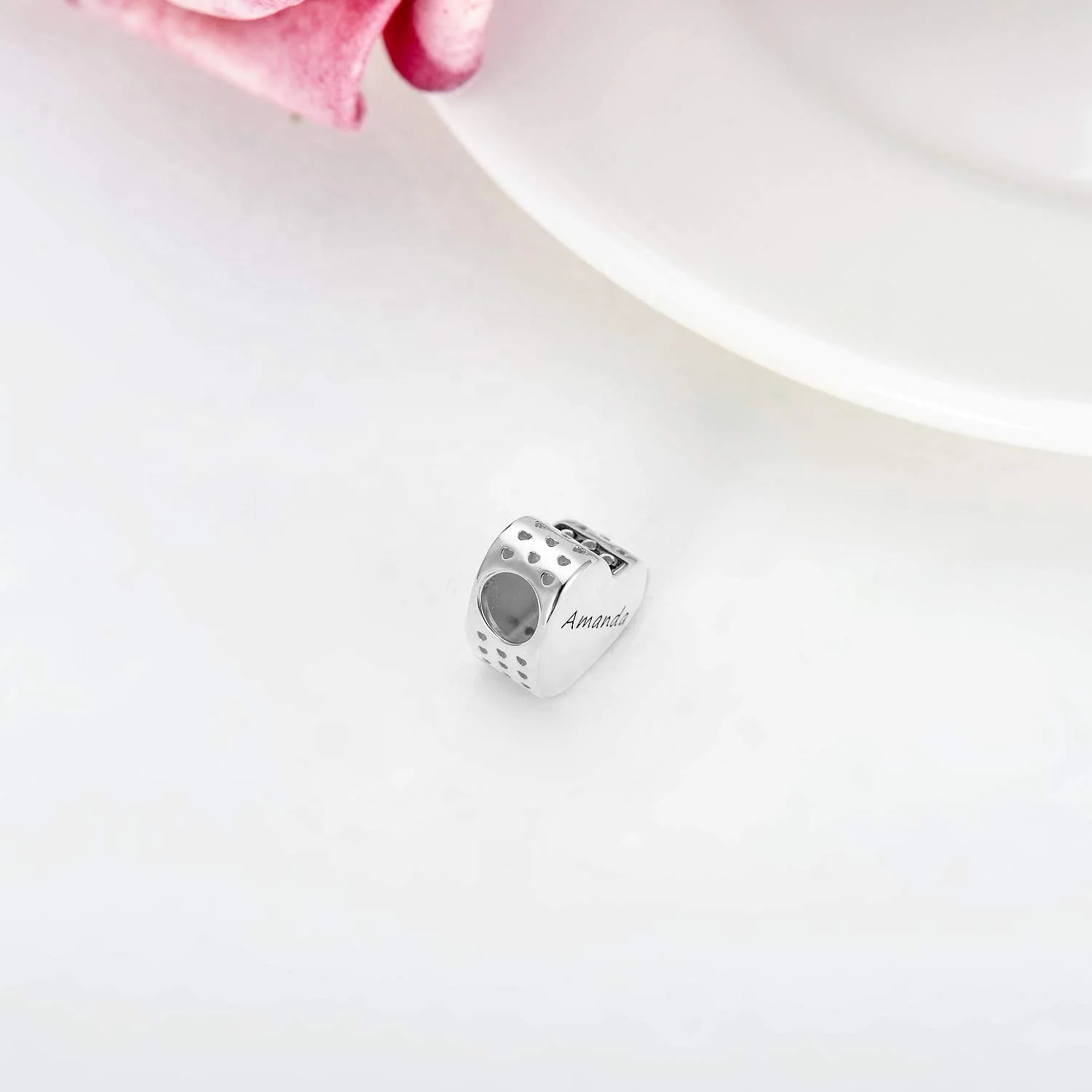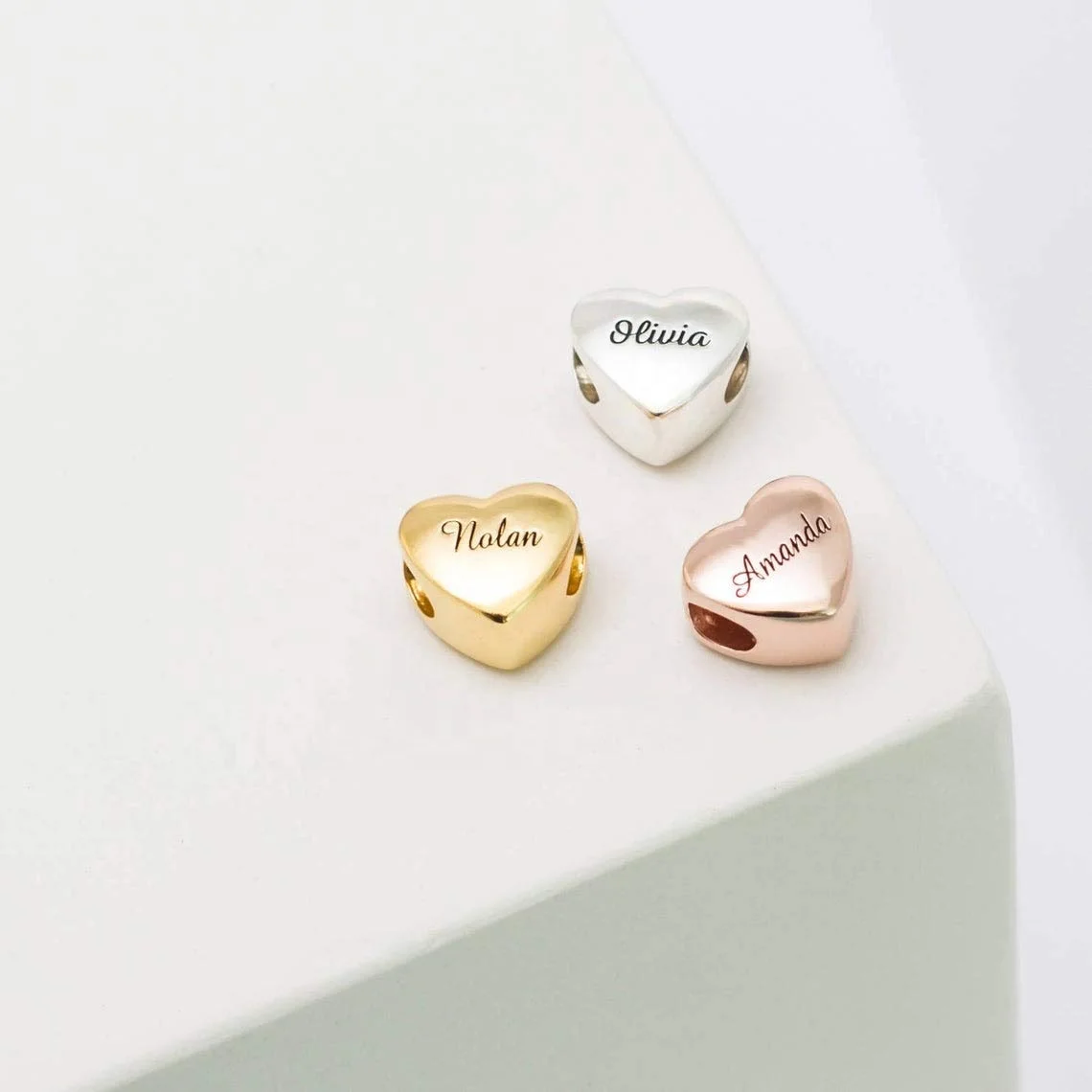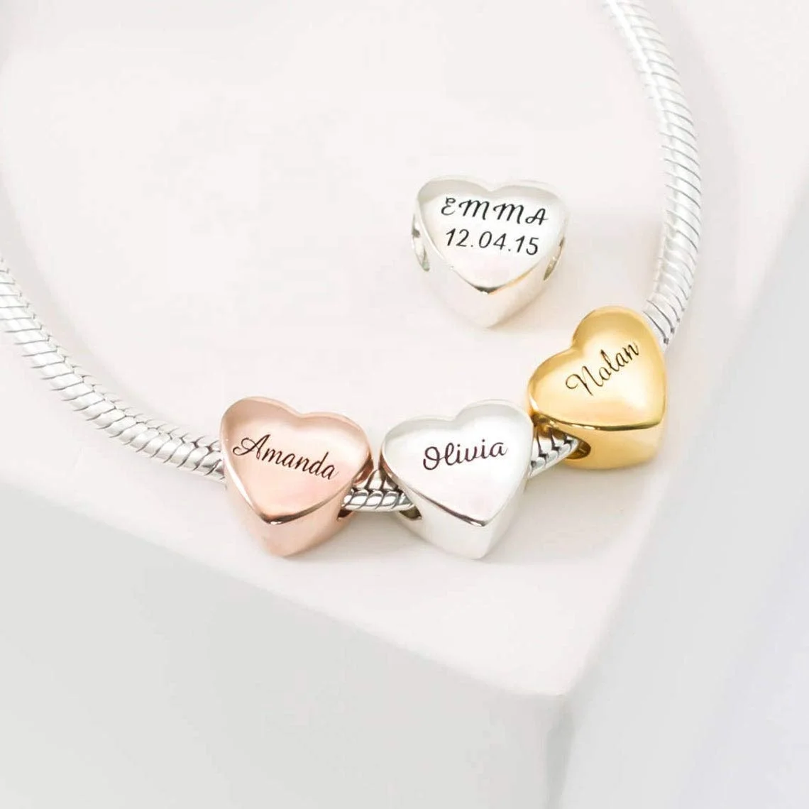 Product name | Rose Gold 925 Sterling Silver Charm Beads Personalised Engraved Name Round Bead Heart Charms |