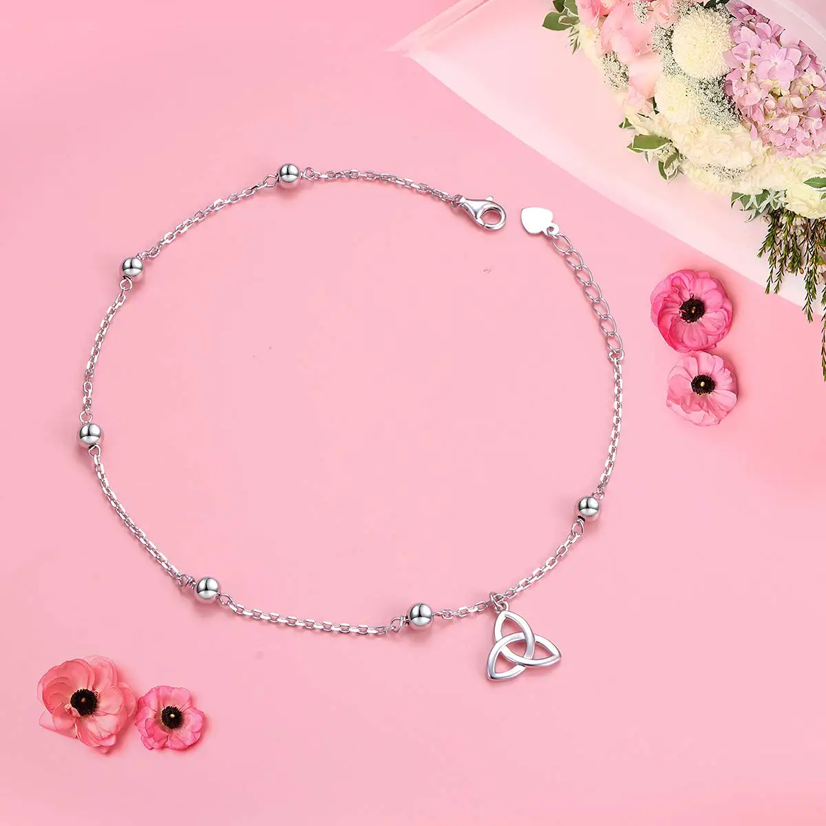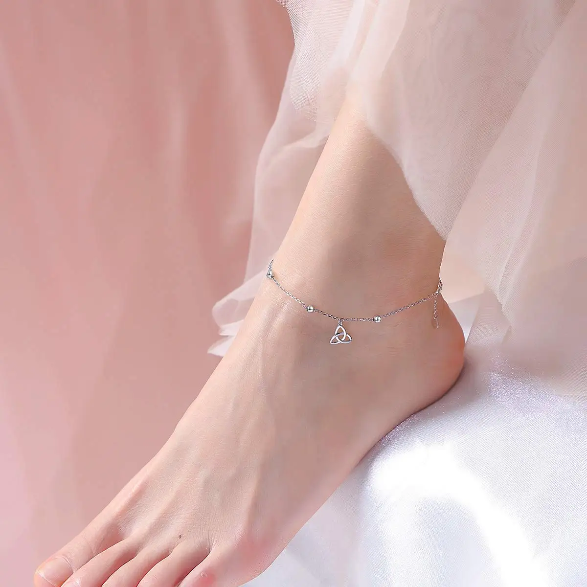 Wholesale Adjustable Foot Jewelry Ankle Bracelet 925 Sterling Silver Celtic Knot Anklets For Women
