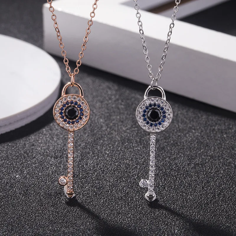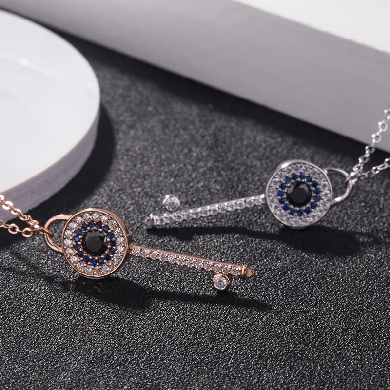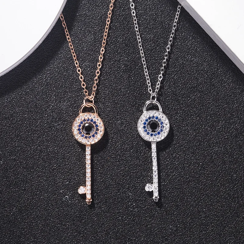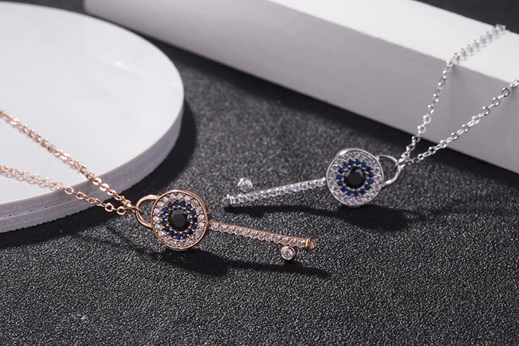 Wholesale Custom Jewelry 925 Sterling Silver Cubic Zirconia Lucky Eye Key Necklace