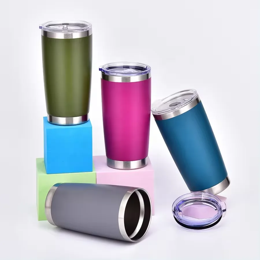 Outdoor Travel Vacuum Insulated Mug Stainless Steel 20oz Coffee Tumbler With Straw