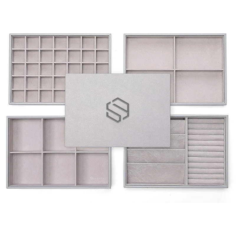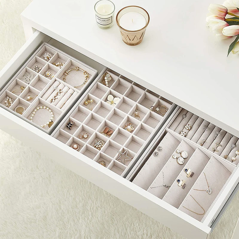 Product name | large ring necklace jewelry trays organizer set of 4 velvet stackable deep trays | |