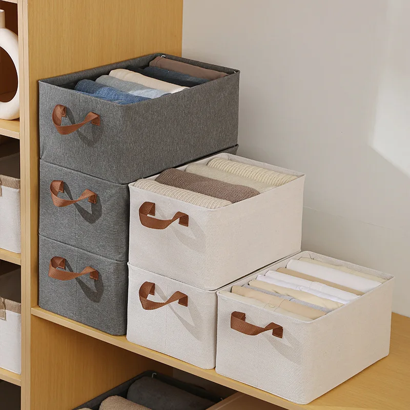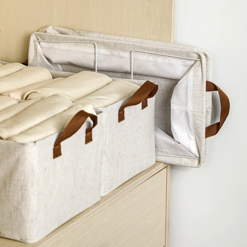 Factory Folded Closet Storage Organizer Eco Cotton Lining Fabric Rectangular Storage Bins With Strong Steel
