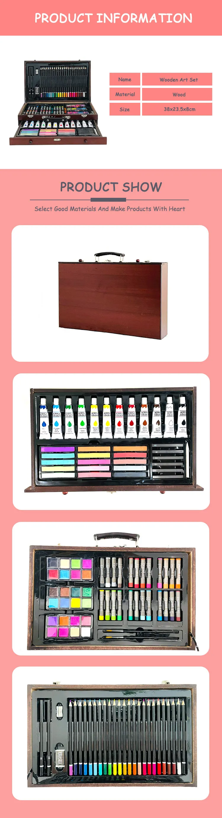 Products Name | GF New Design 112 Pcs Deluxe DIY Crafts Artist Coloring Drawing Painting Kit Drawer Wooden Art Set | |||||
