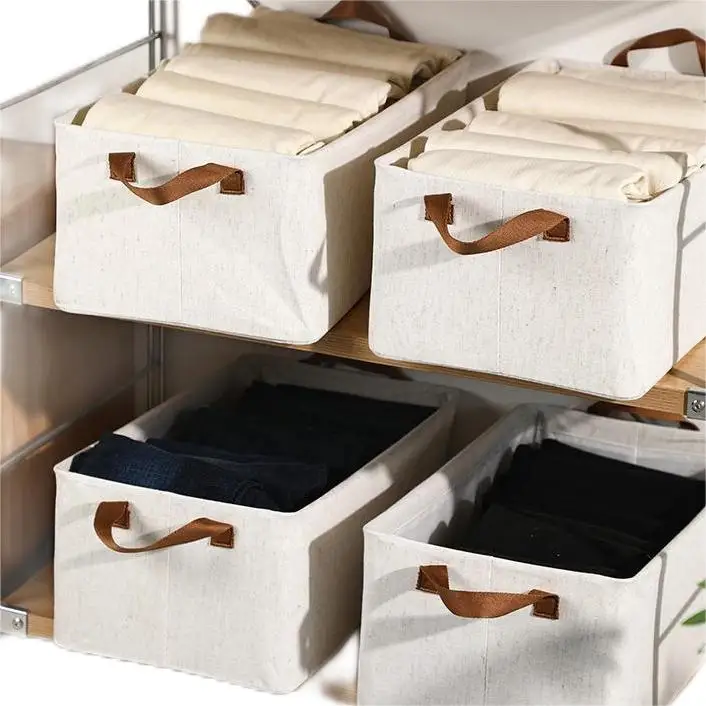 Collapsible Clothes Storage Box Closet Organizer with Durable Handles Thickened Fabric Toy Storage Basket