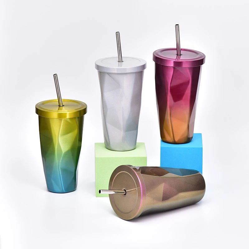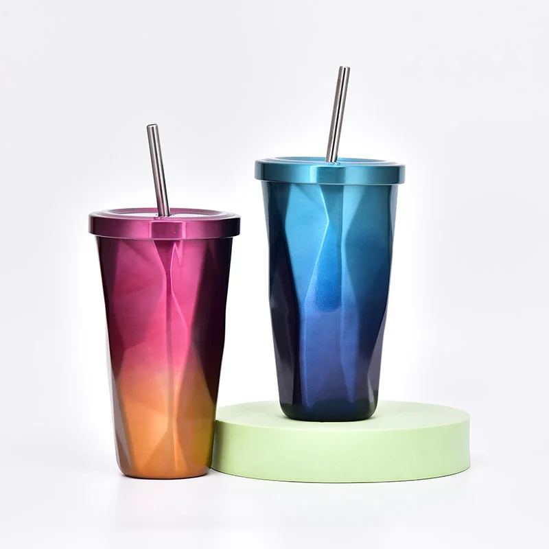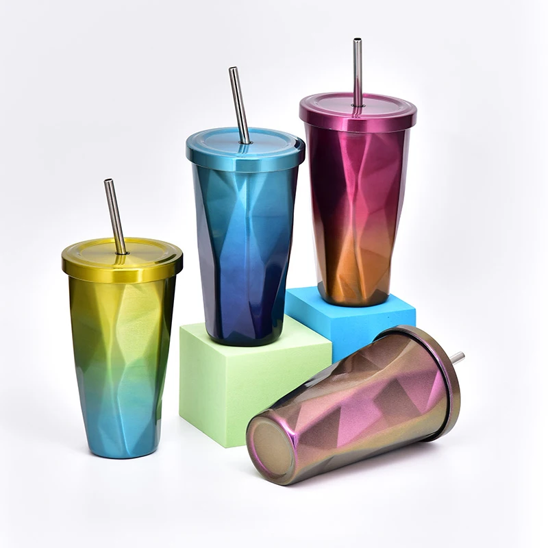 Custom Chlidrens Straw Tumblers Double Wall Coffee Cup Stainless Steel Tumbler With Lid & Straw