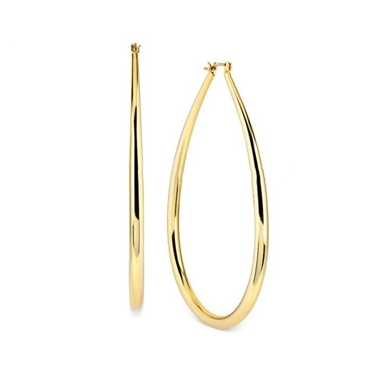 Fine Jewelry Simple Design 925 Sterling Silver 14K Gold Plated Teardrop Hoop Earrings