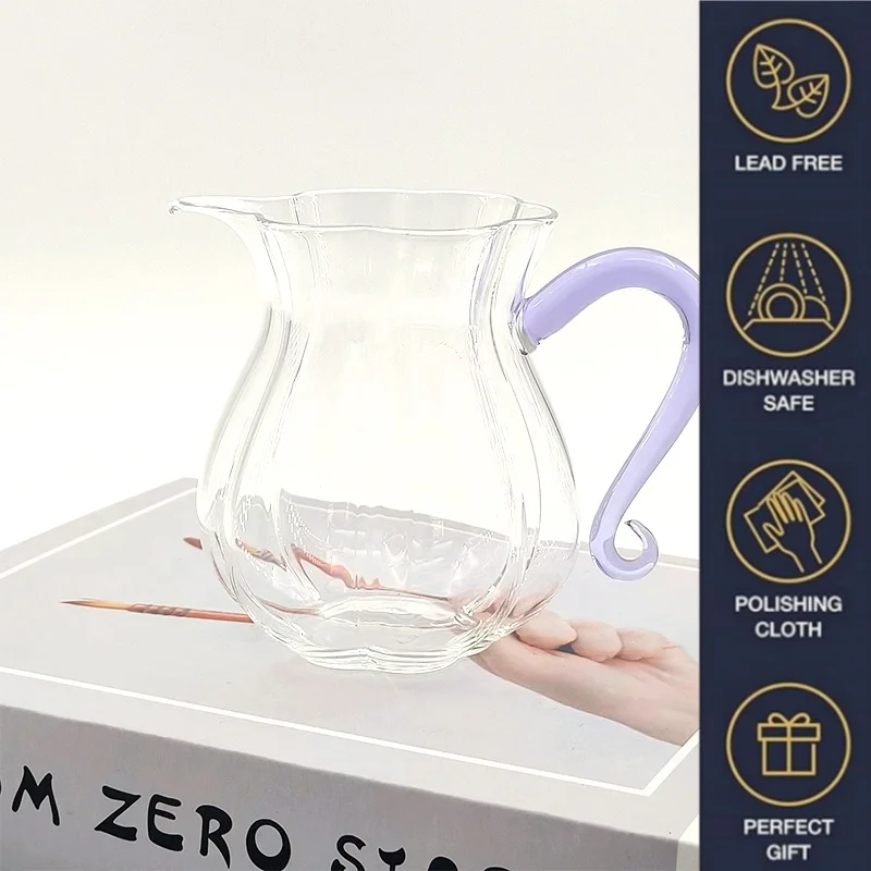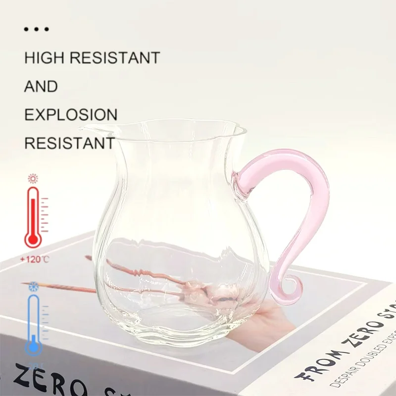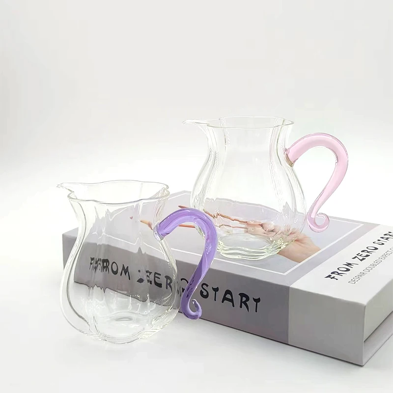 Factory Handblown Heat Resistant 300ml Capacity High Borosilicate Teapot Glass Share Mug Tea Justice Cup With Color Handle