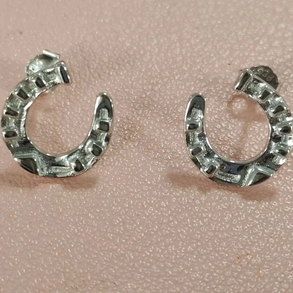 Wholesale Custom Equestrian Jewelry 925 Sterling Silver Horseshoe Stud Earrings