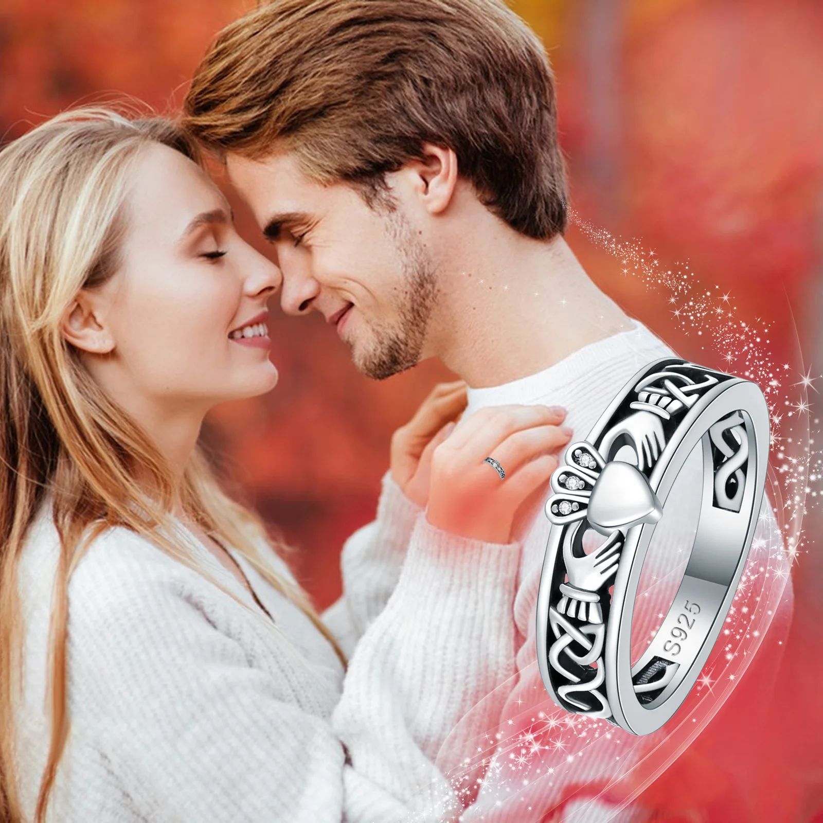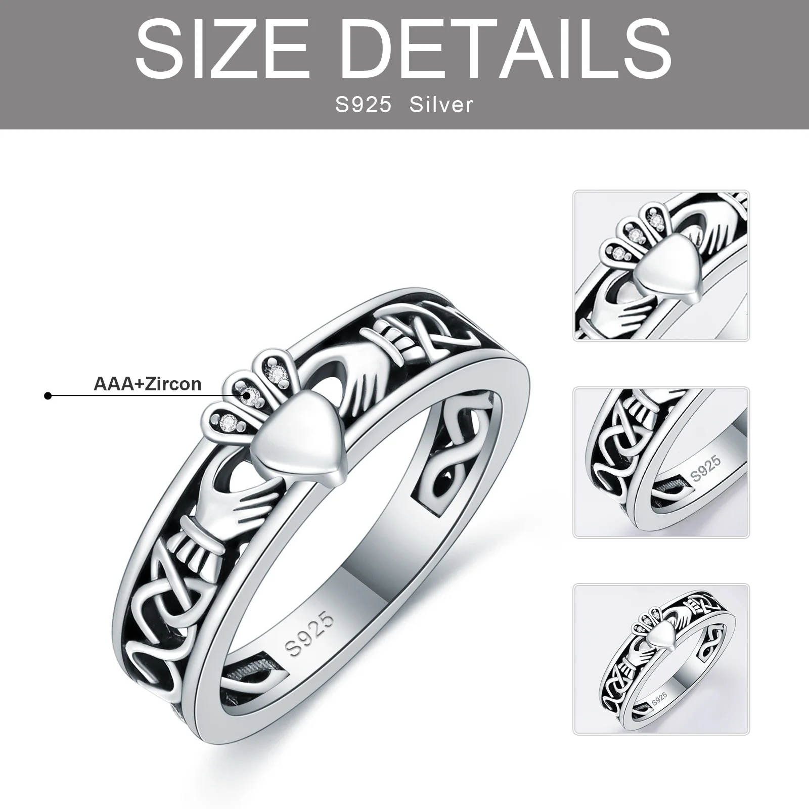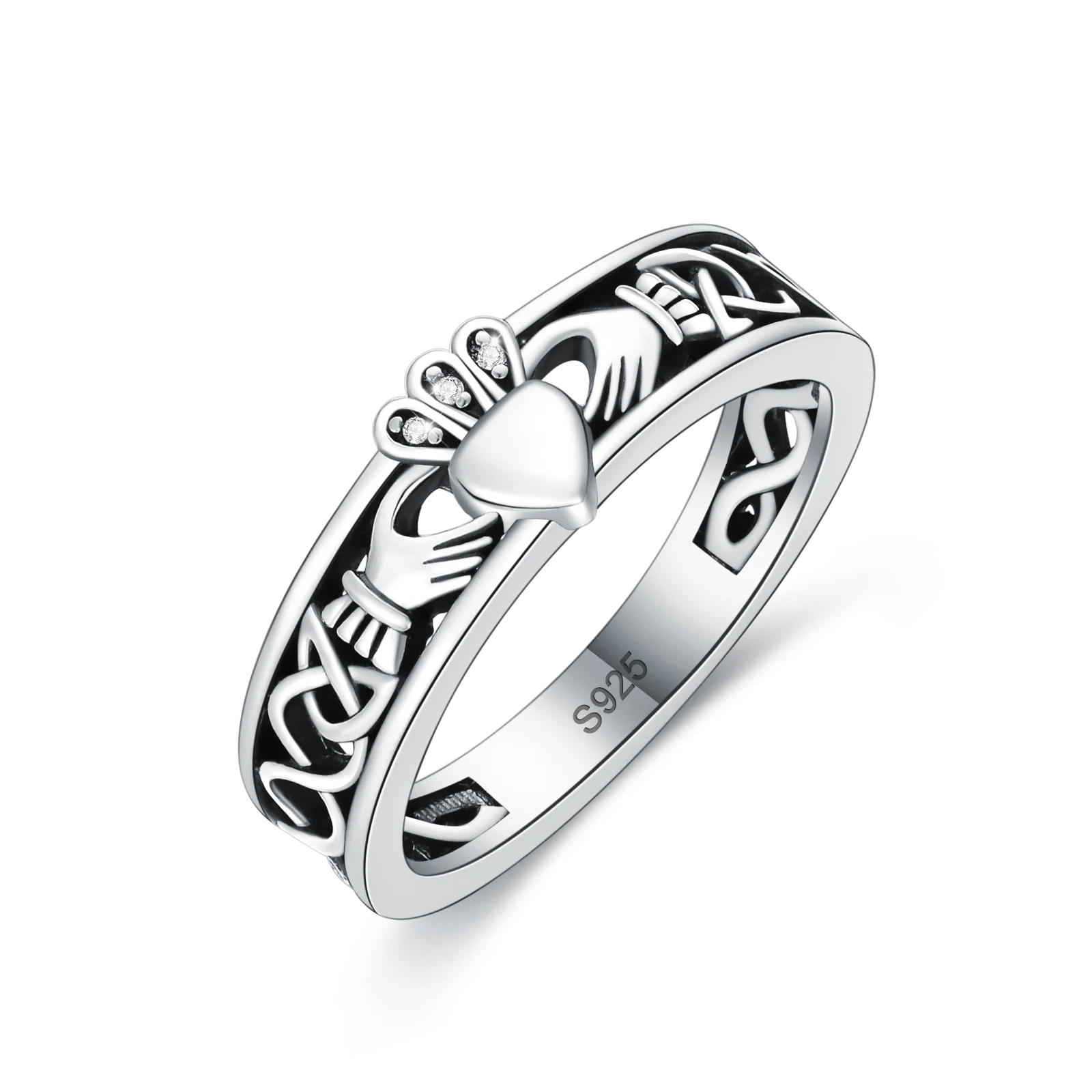 YFN Jewelry 925 Sterling Silver Rhodium White Gold Plated Celtic Knot Irish Heart Band Ring