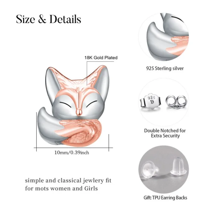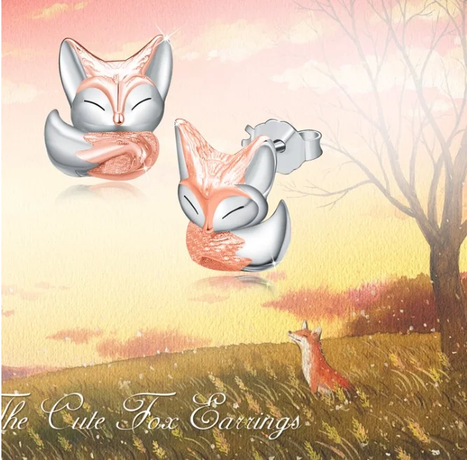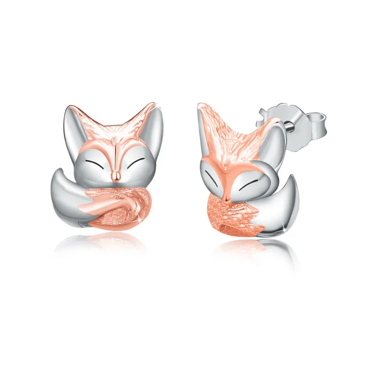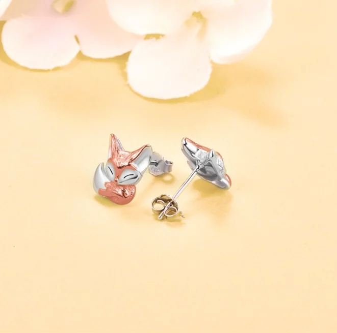 Animal Fox Rose Gold Small Cute 925 Sterling Silver Stud Earrings for Kids Girls Women Earrings Jewelry