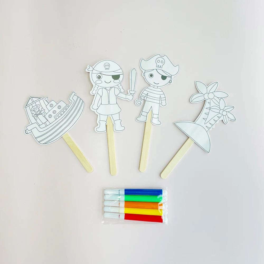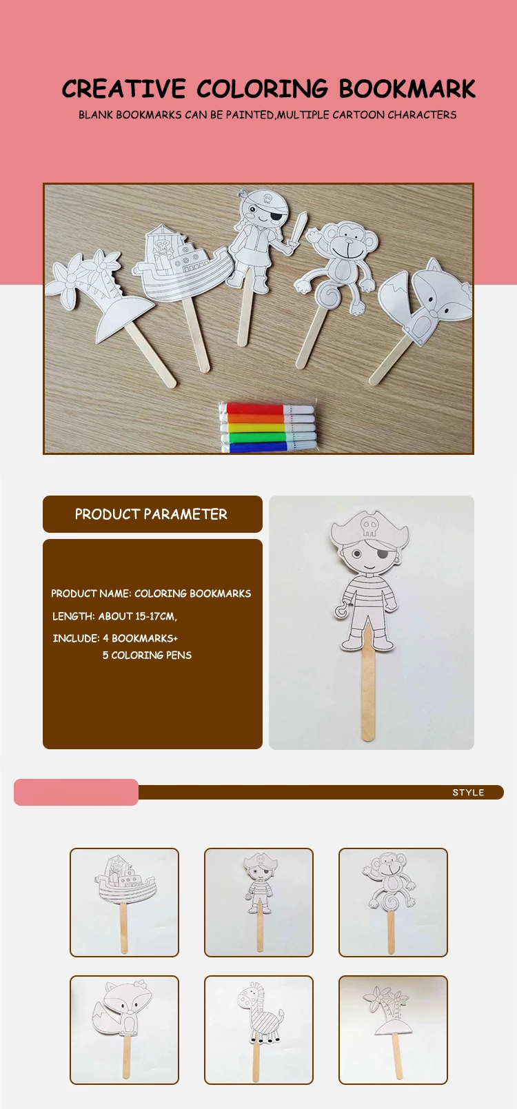 Products Name | GF Factory Custom Lovely Cute Flowers Animals DIY Blank Wooden Stick Pirate Captain Coloring Bookmarks With 5 Coloring Pens | |||||