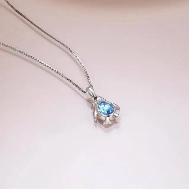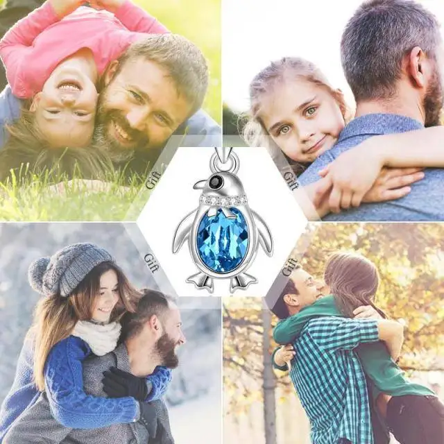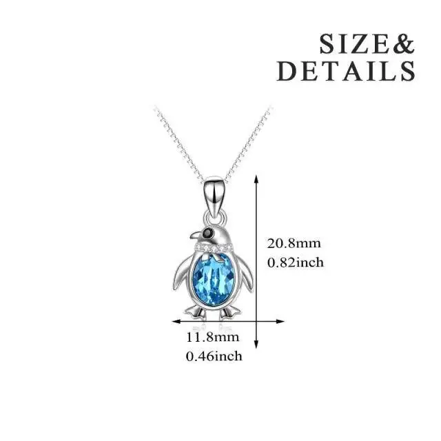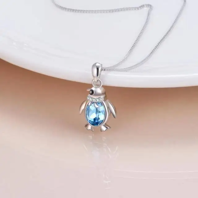 Fine Jewelry 925 Sterling Silver Cubic Zircon Cute Penguin Blue Crystal Pendant Necklace