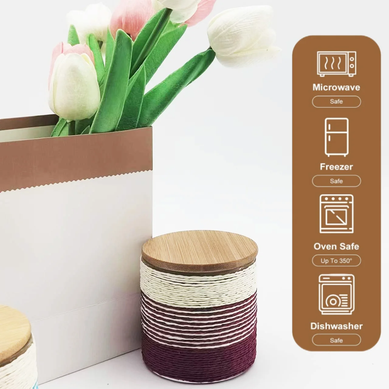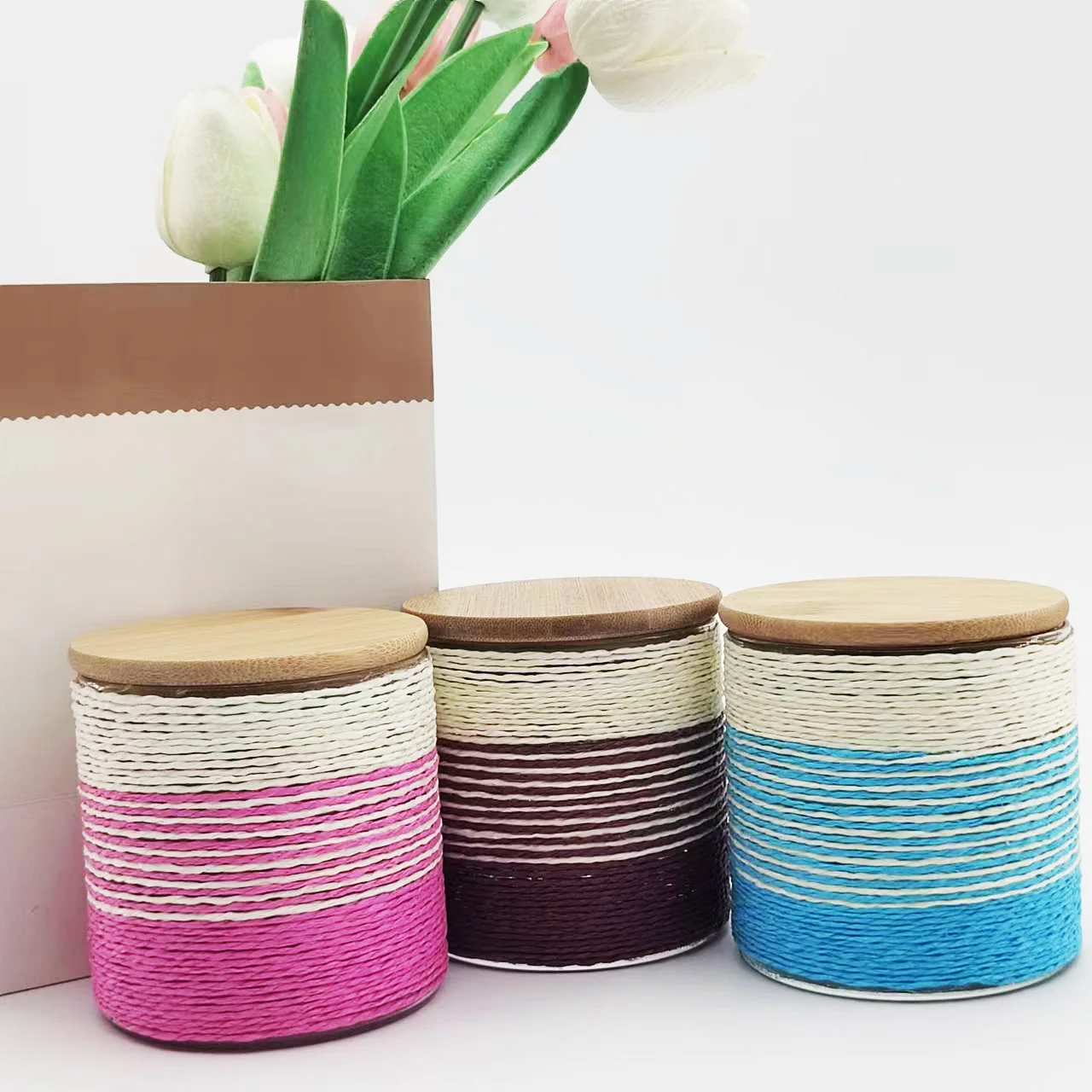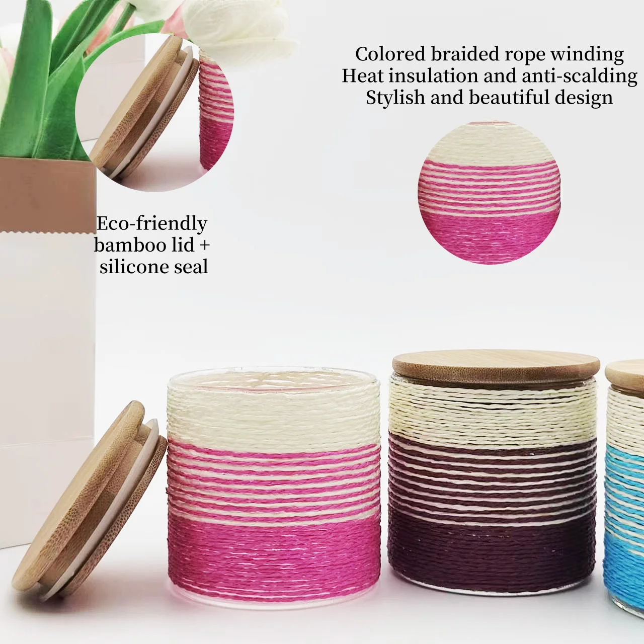 New Product Creative Custom Colored Twine Winding Borosilicate Glass Cups Gift Coffee Mugs with Bamboo Lid
