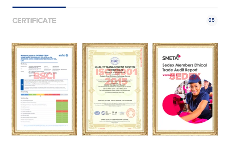 BSCI, SEDEX and ISO9001:2015 etc. certificates qualified.