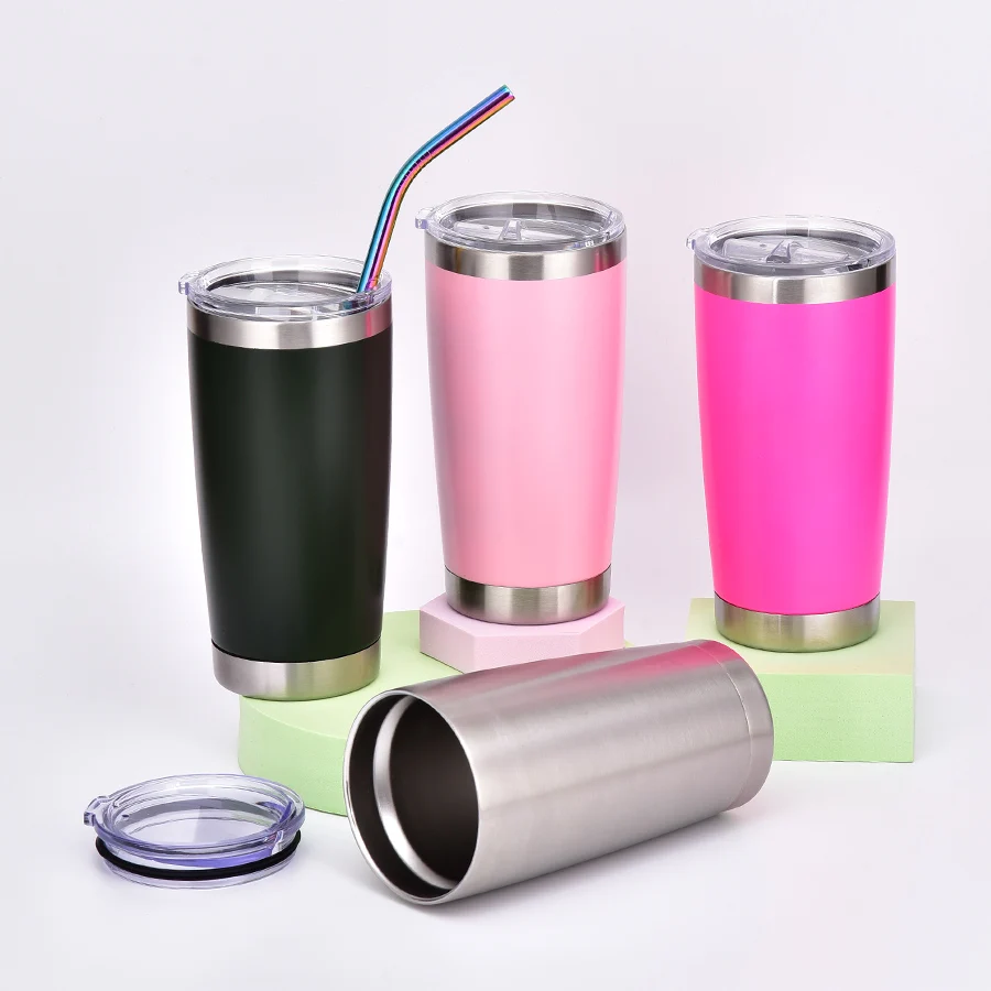 Vacuum Insulated Stainless Steel Tumbler Thermos Travel 20oz Coffee Mug Drinkware With Straw And Lid