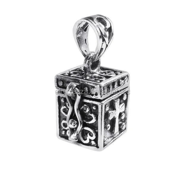 Wholesale Jewelry High Quality 925 Sterling Silver Antique Prayer Box Pendant Charms