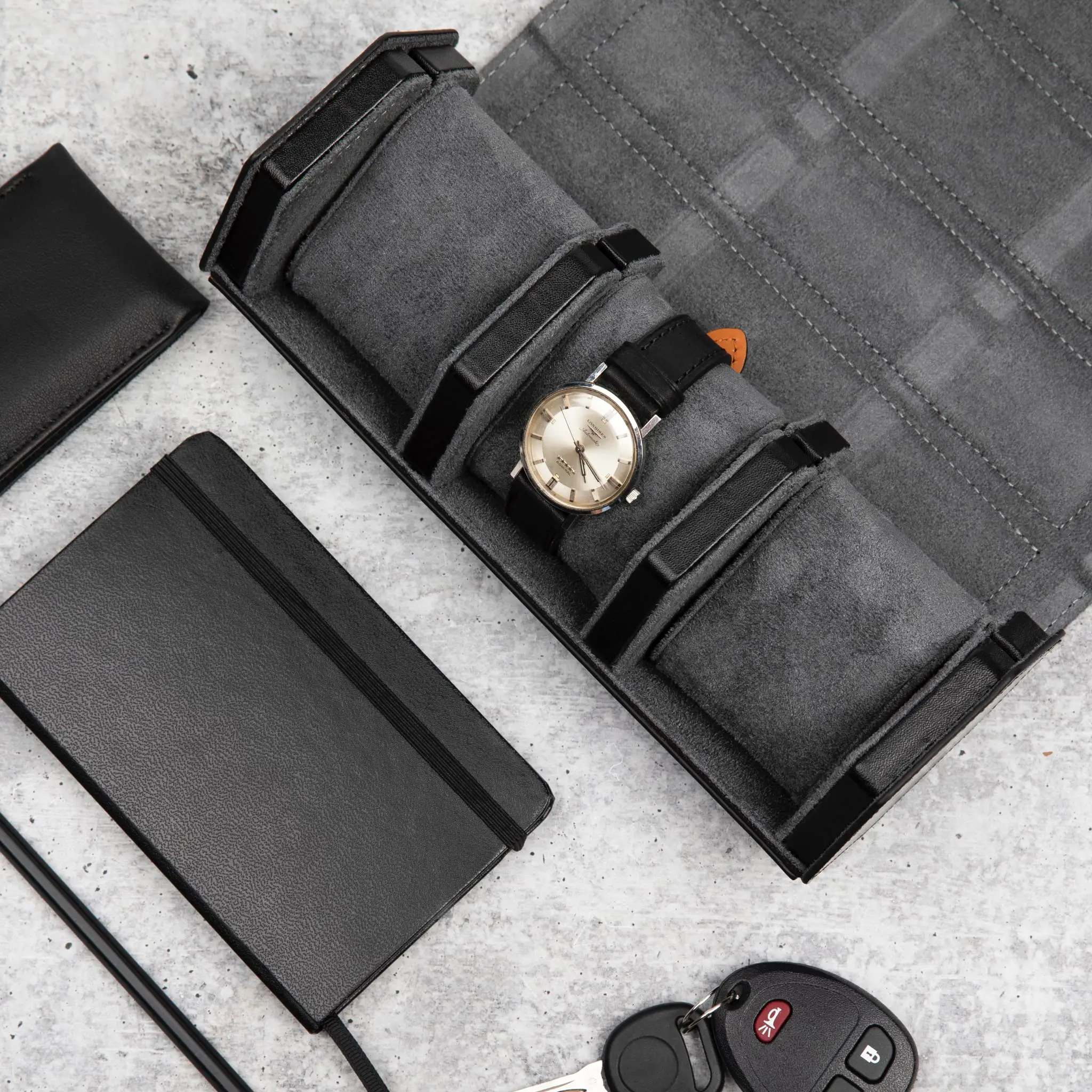 Product name | Horology Hour Prism Genuine Full Grain Travel Watch Case Box Luxury Napa Leather Watch Roll Box 3 Slots Watch Travel Case | |
