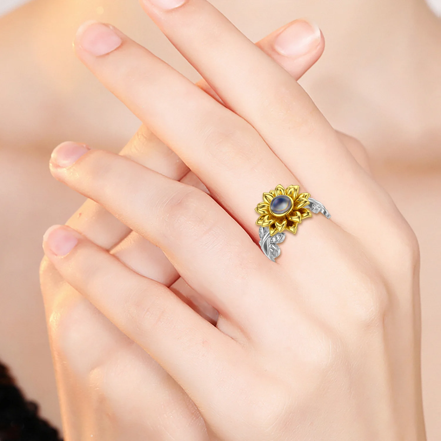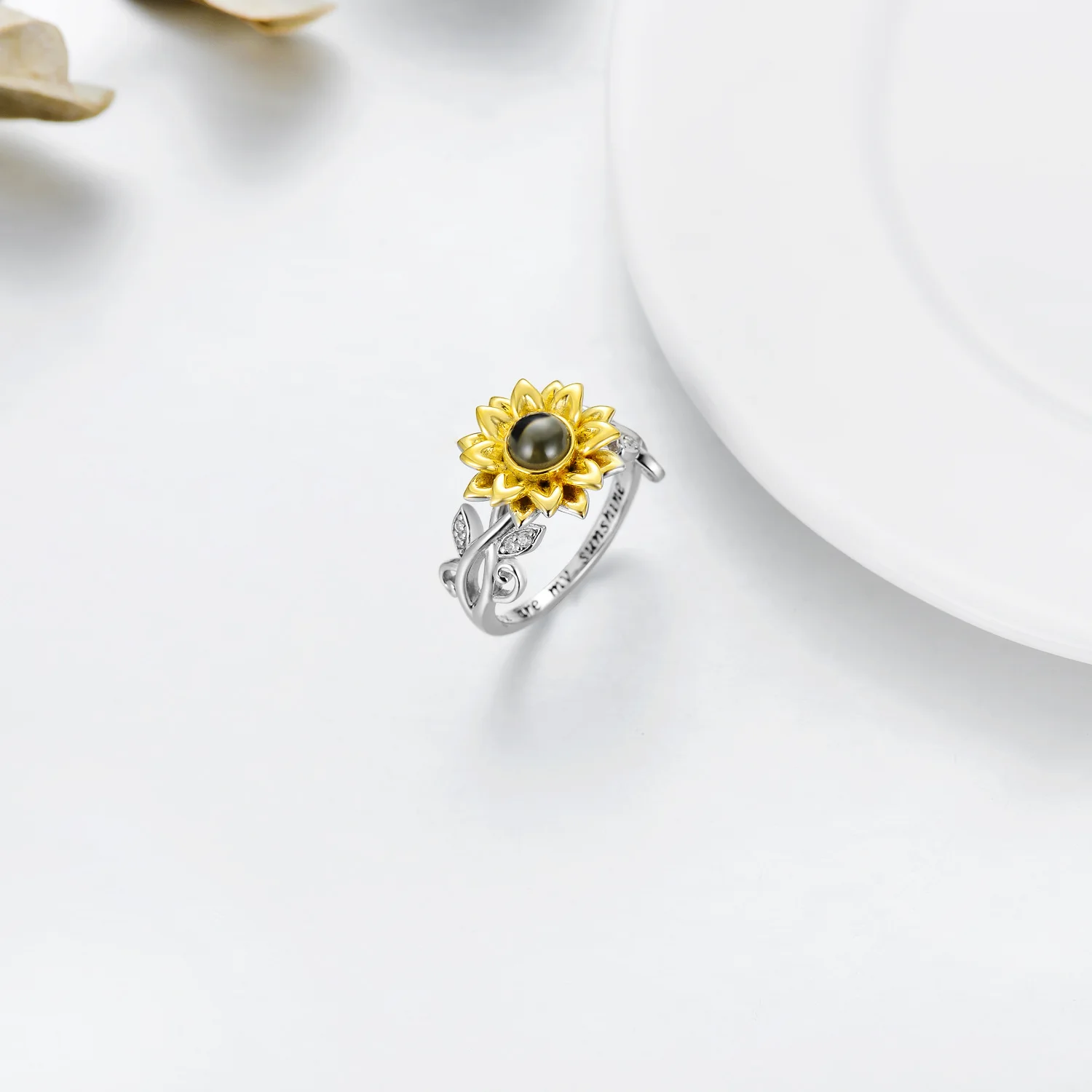 Fine Jewelry 925 Sterling Silver I Love You 100 Languages Stone Sunflower Flower Ring For Women