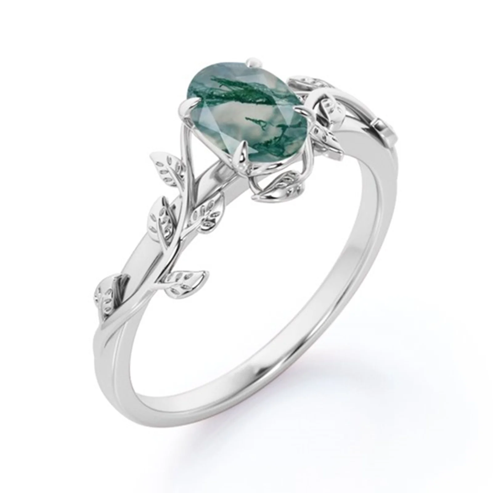 Engagement Jewelry 925 Sterling Silver Oval Cut Green Natural Moss Agate Ring For Women