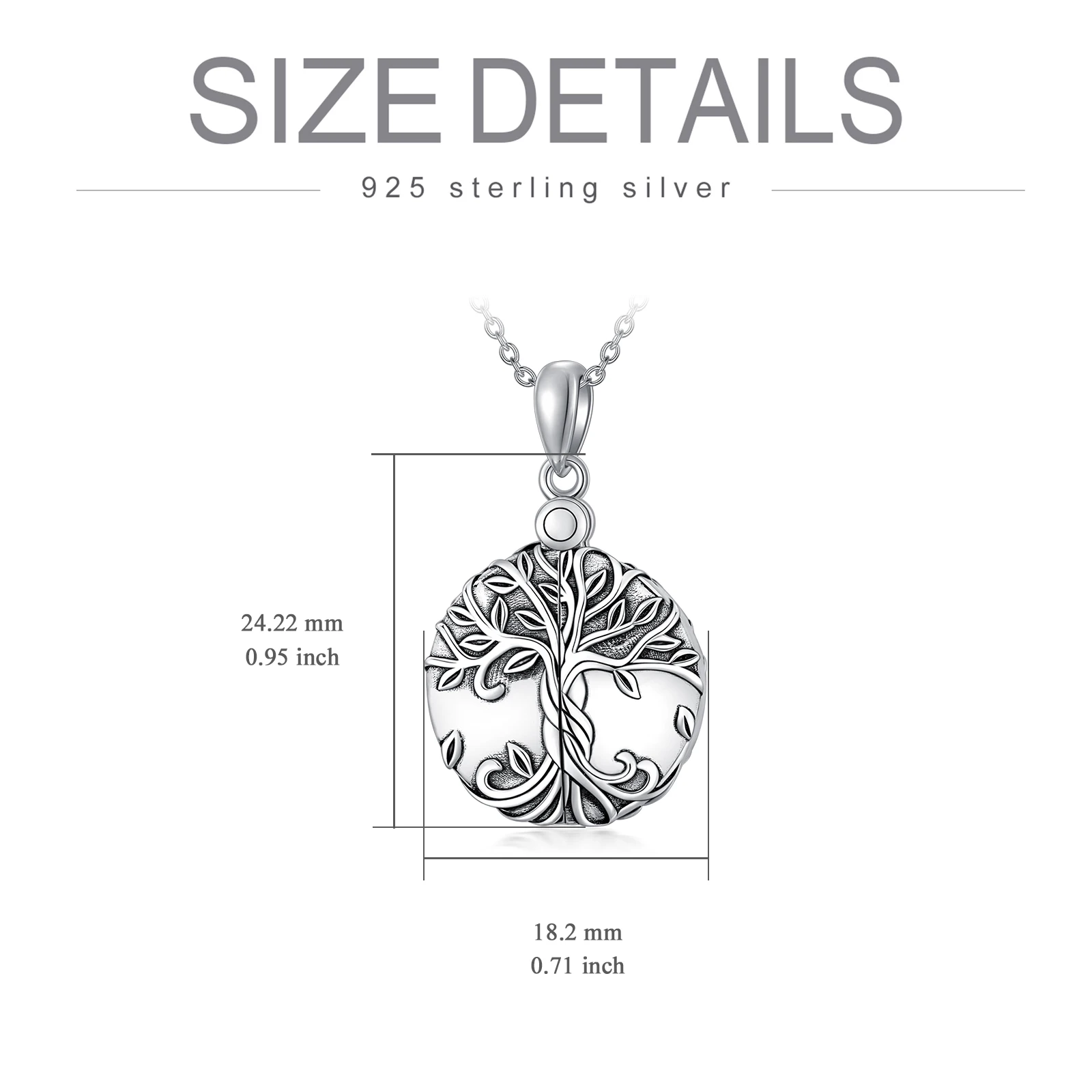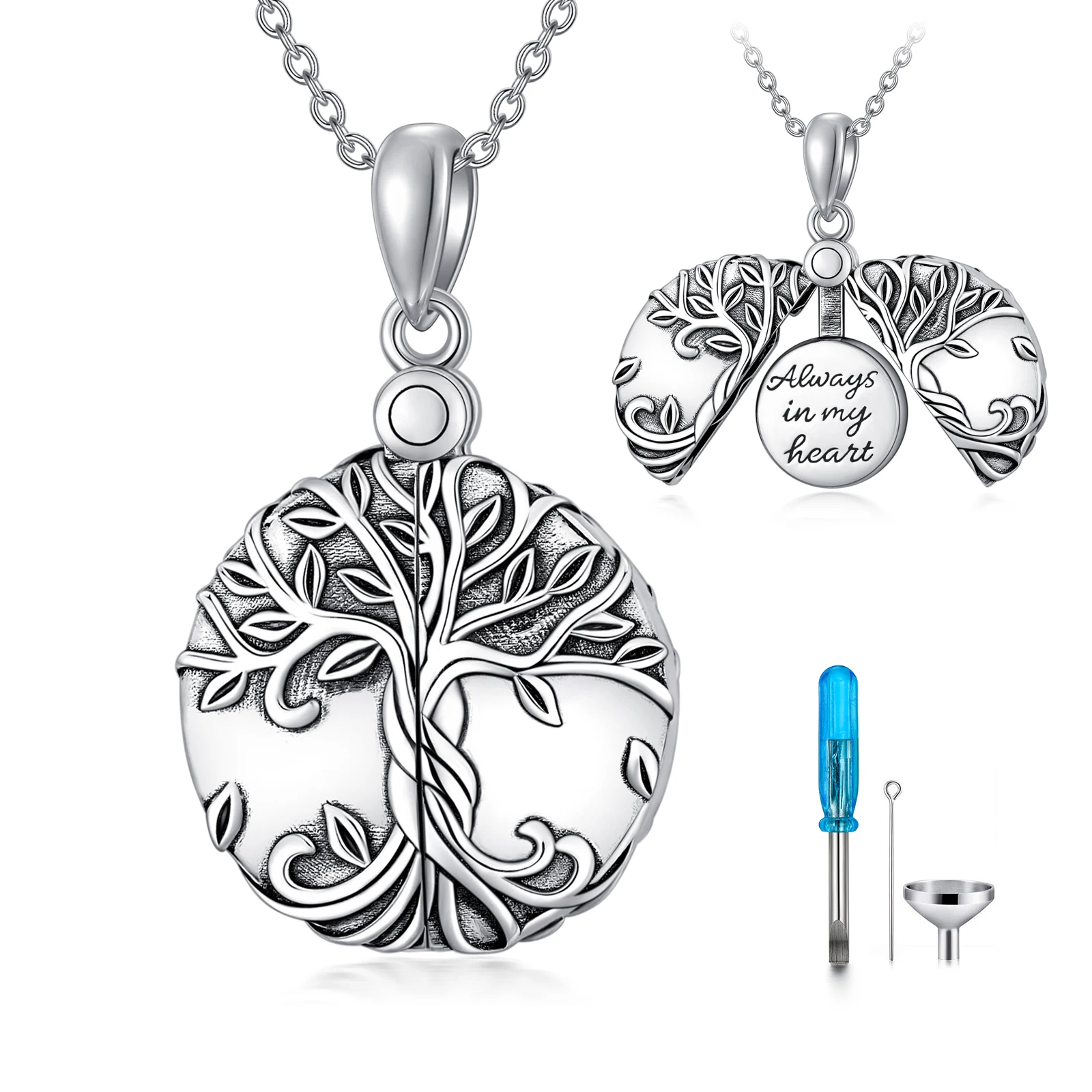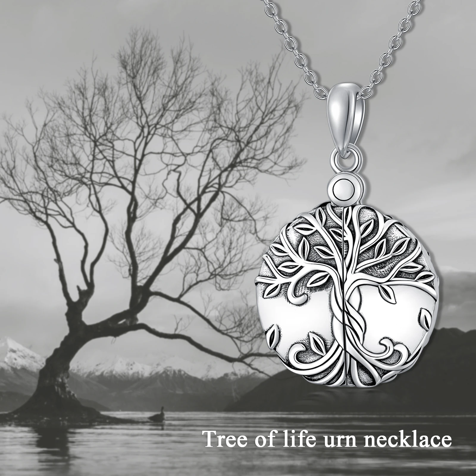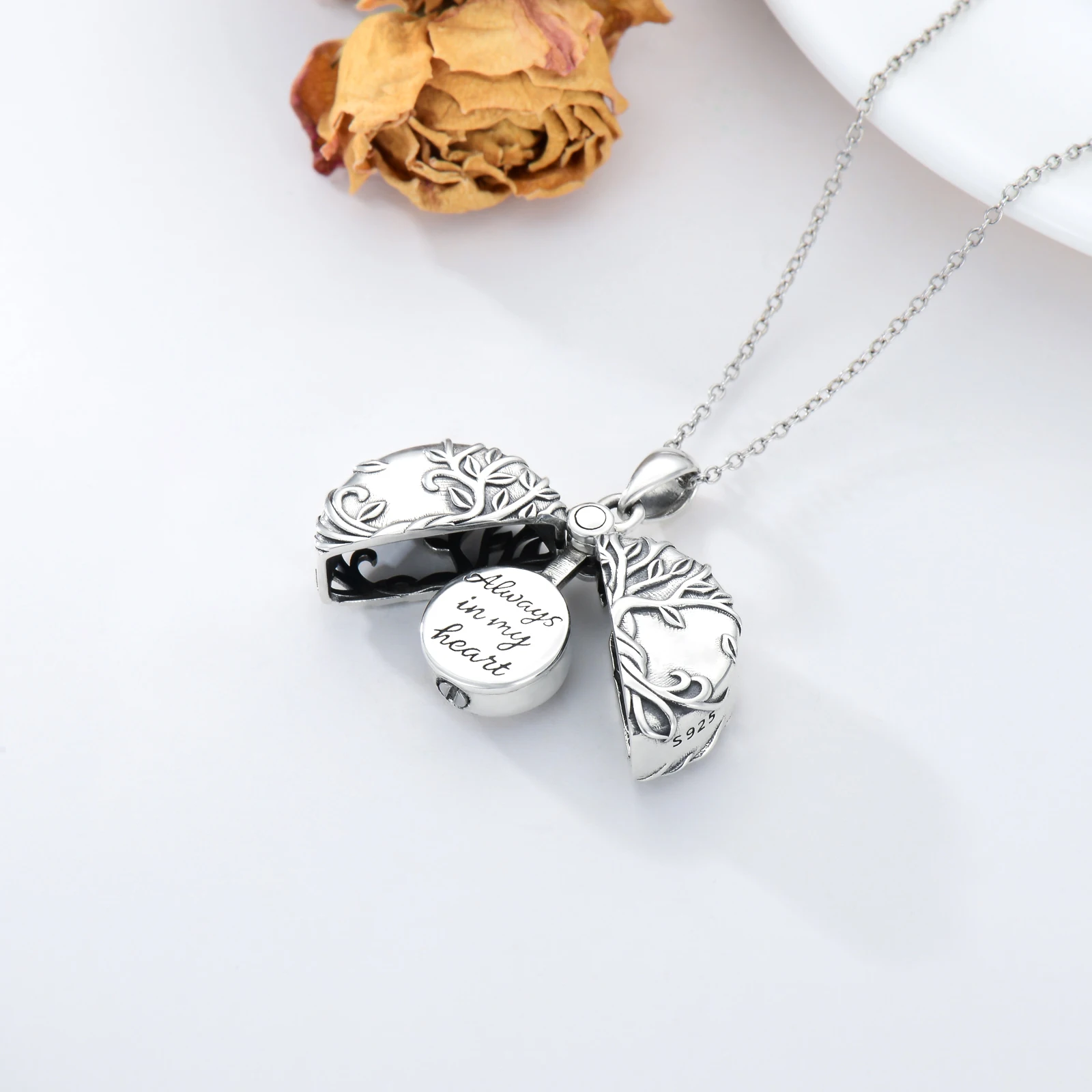High Quality 925 Sterling Silver Tree Of Life Engraved Round Ashes Urn Necklace
