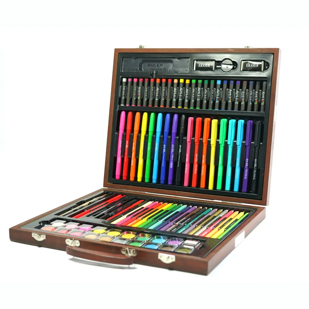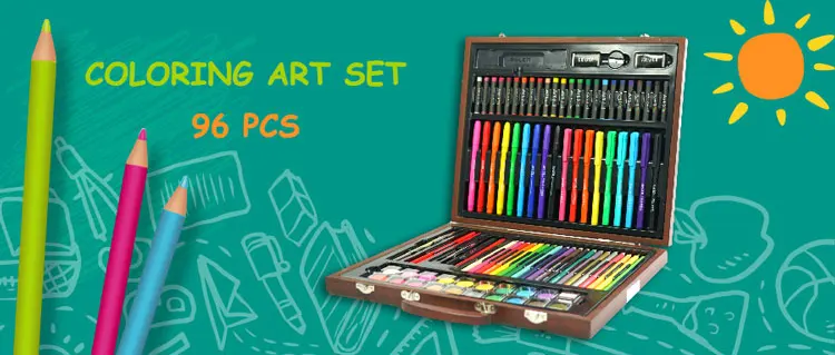 GF hot sale 96 pcs creative portable coloring artist drawing wood case kids stationery painting art set