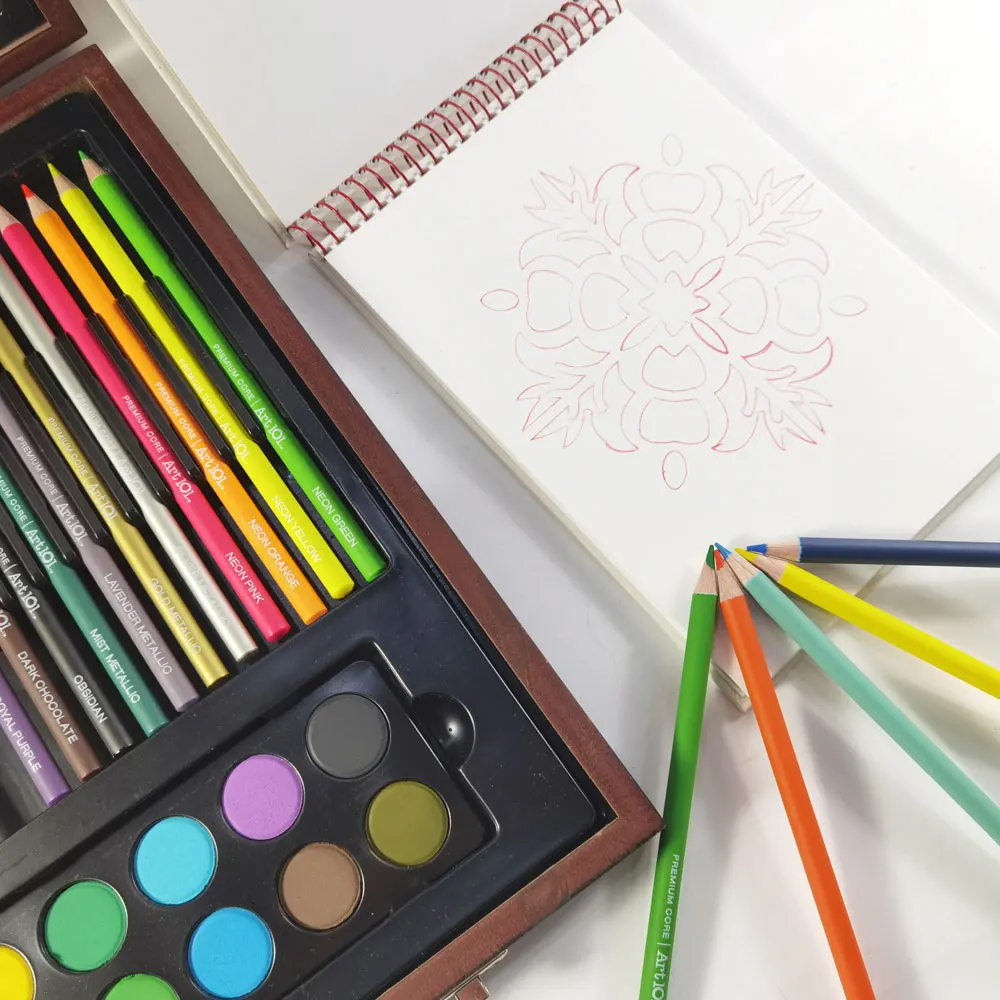 * Includes color pencils, oil pastels, watercolor cakes, paintbrushes, pencils, and accessories